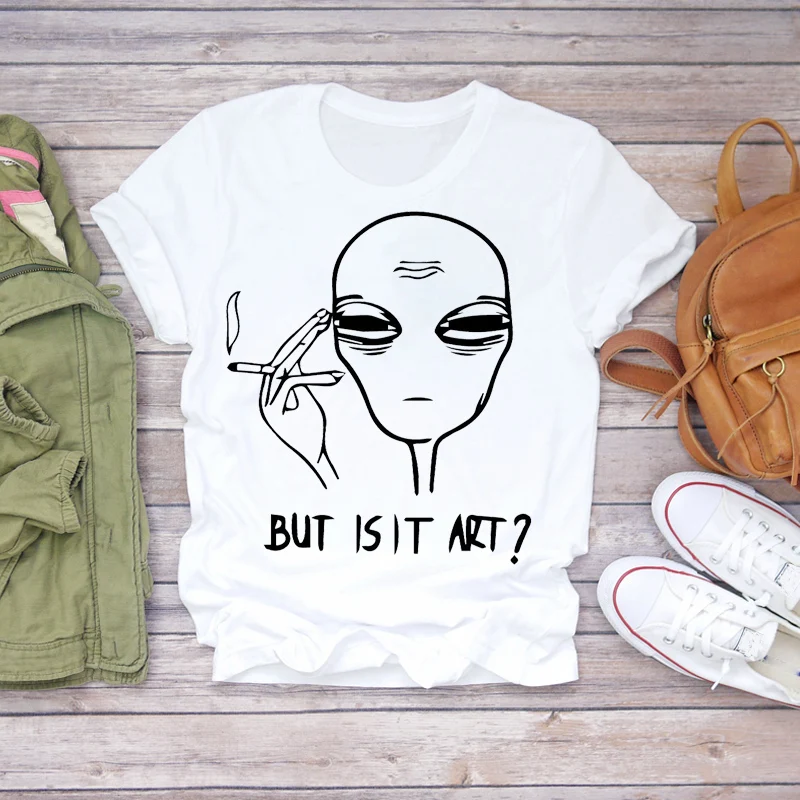 Женские летние футболки с коротким рукавом и пришельцом, с забавным...