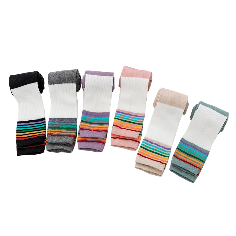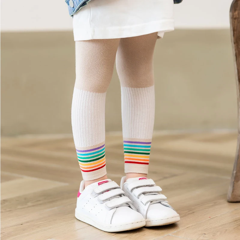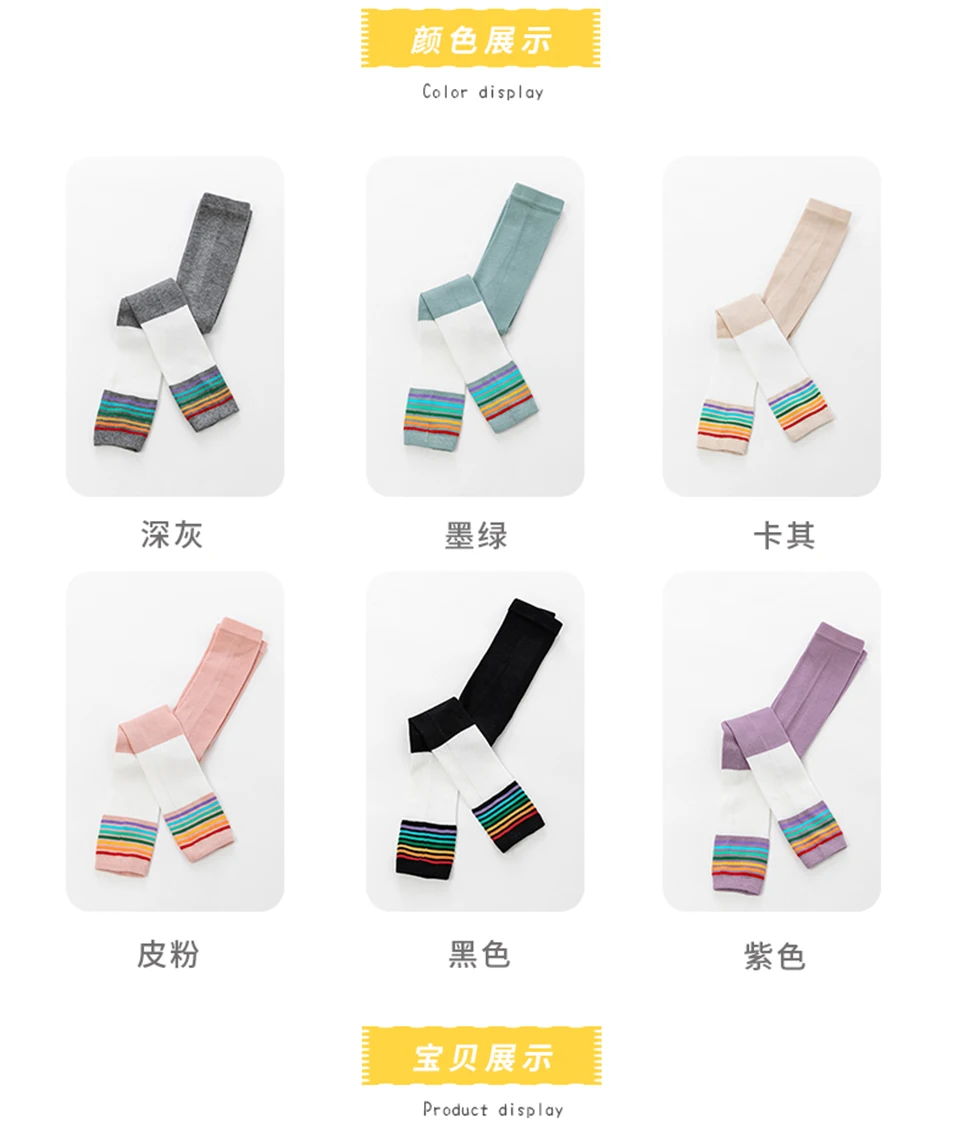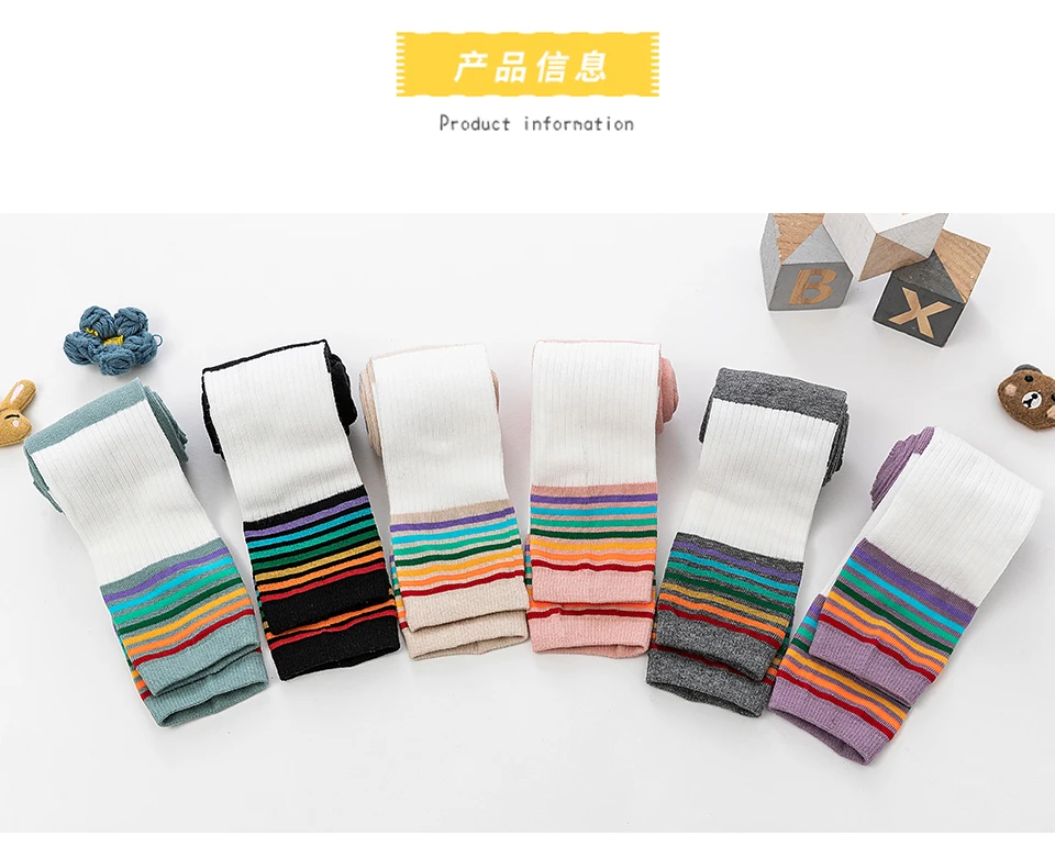 Детские хлопковые ребристые леггинсы, летние тонкие штаны с разноцветными радужными полосками для маленьких девочек, детские аксессуары