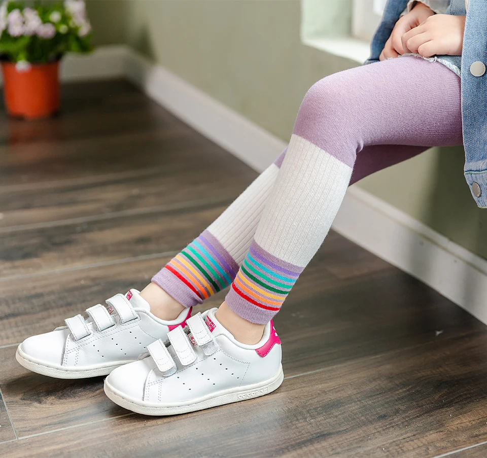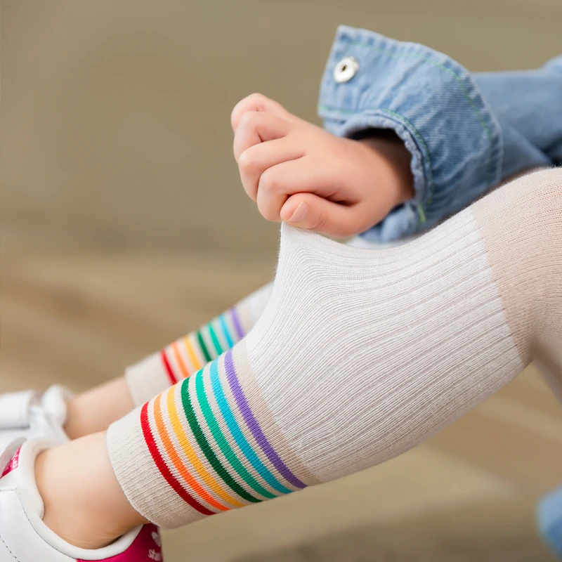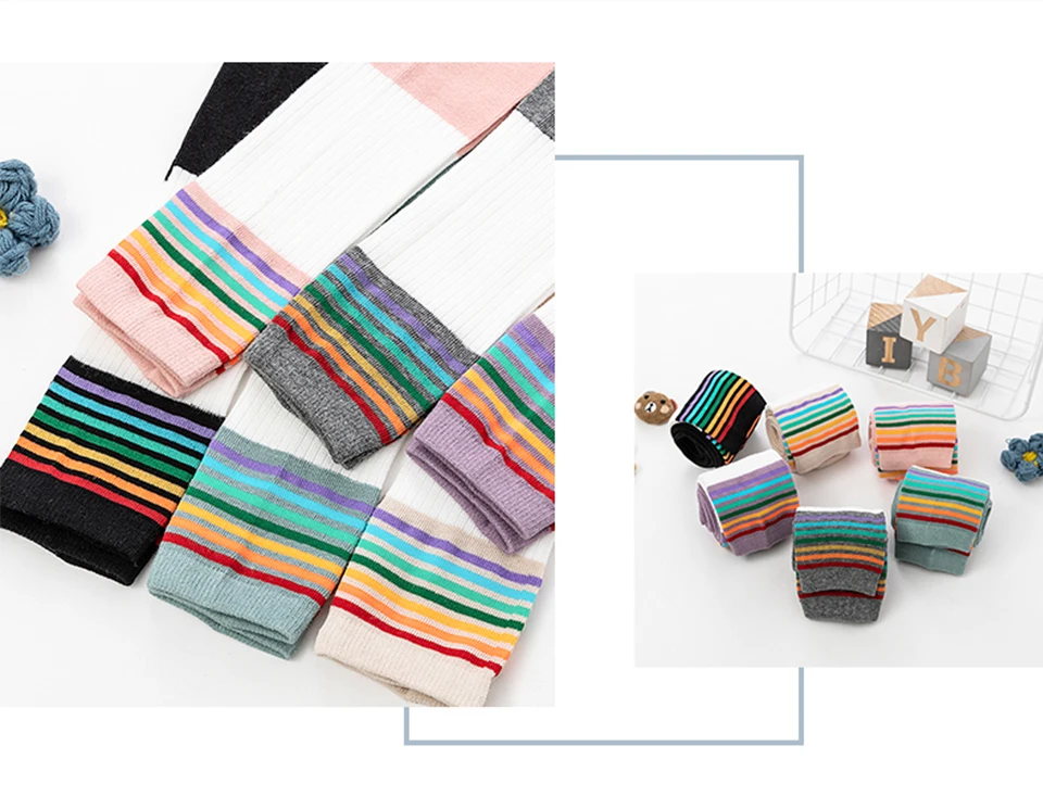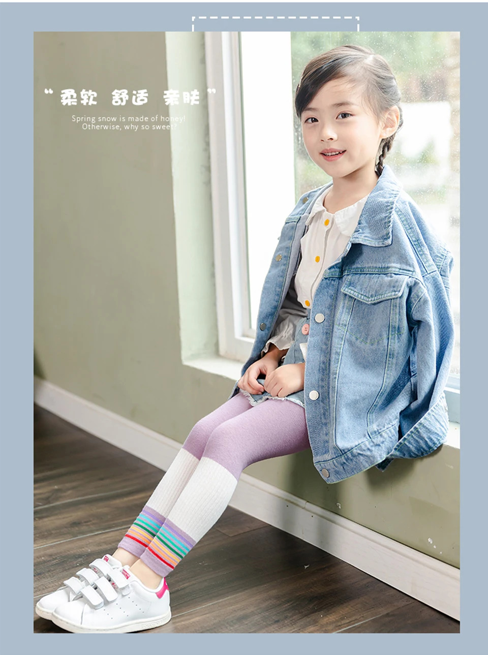 Детские хлопковые ребристые леггинсы, летние тонкие штаны с разноцветными радужными полосками для маленьких девочек, детские аксессуары