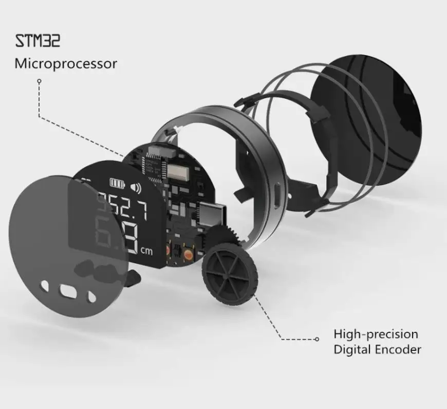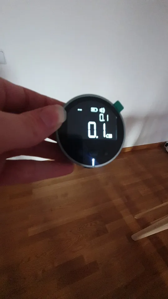 Интересная идея, меряет довольно точно. Но измерять расстояние от стенки до стенки, к примеру, очень неудобно т.к. достать до "вершины угла" не получается из-за круглой конструкции (бока мешают).