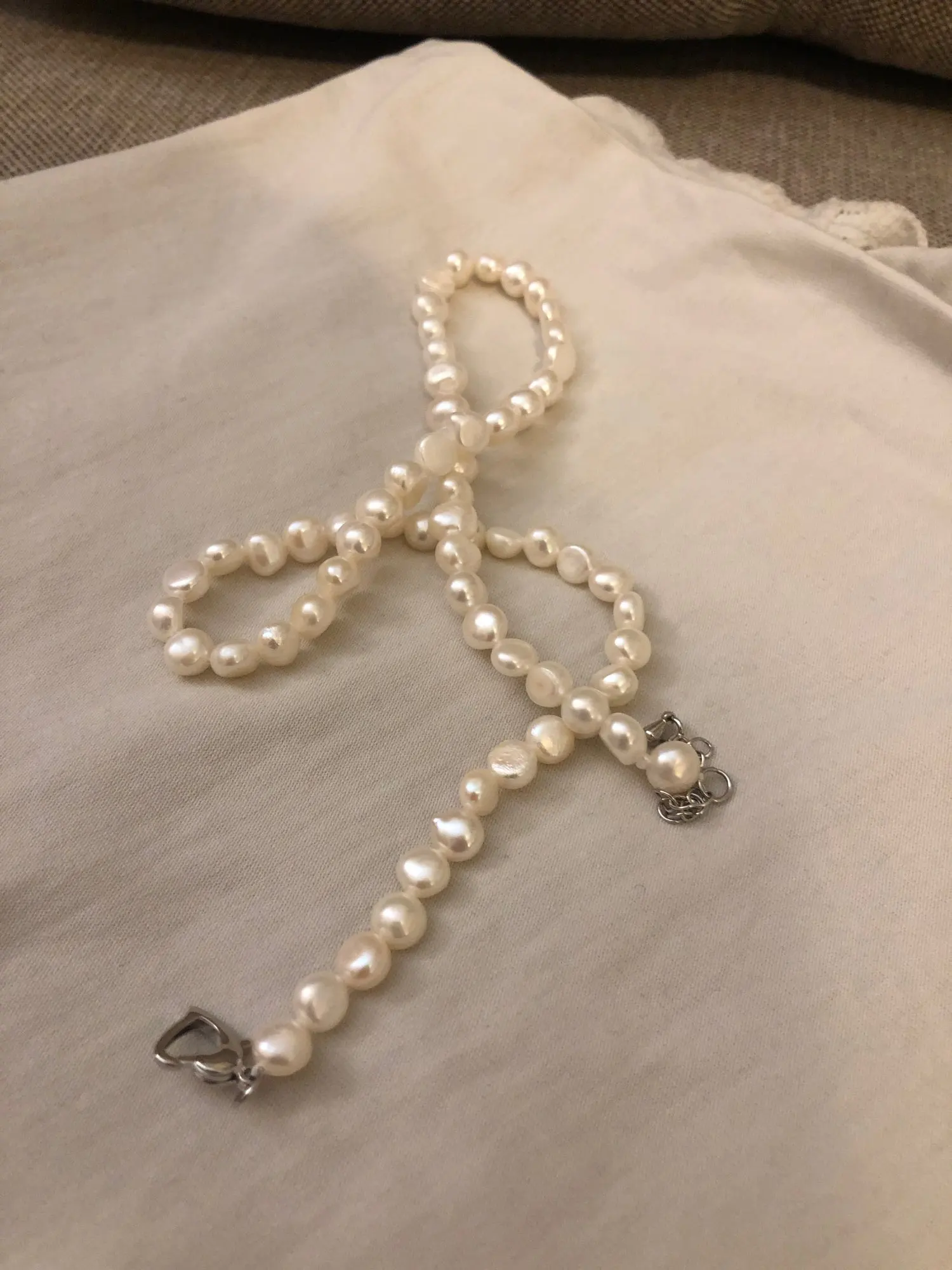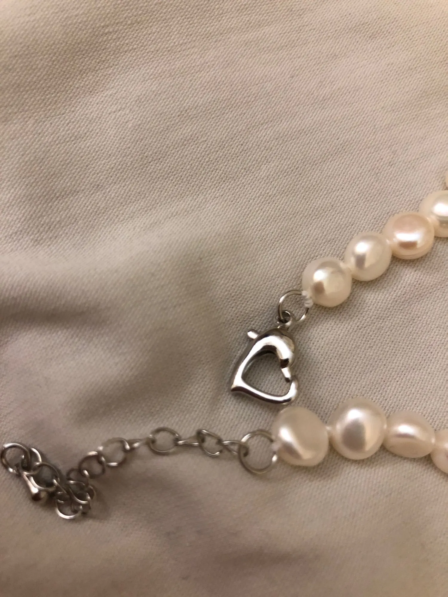 хорошенькое, застежка сердечком, жемчуг необычный, не сильно тяжелый, возможно и правда речной. В комплекте бархатный мешочек