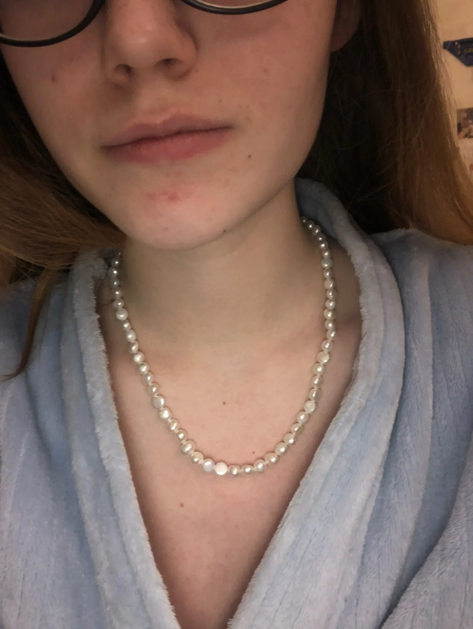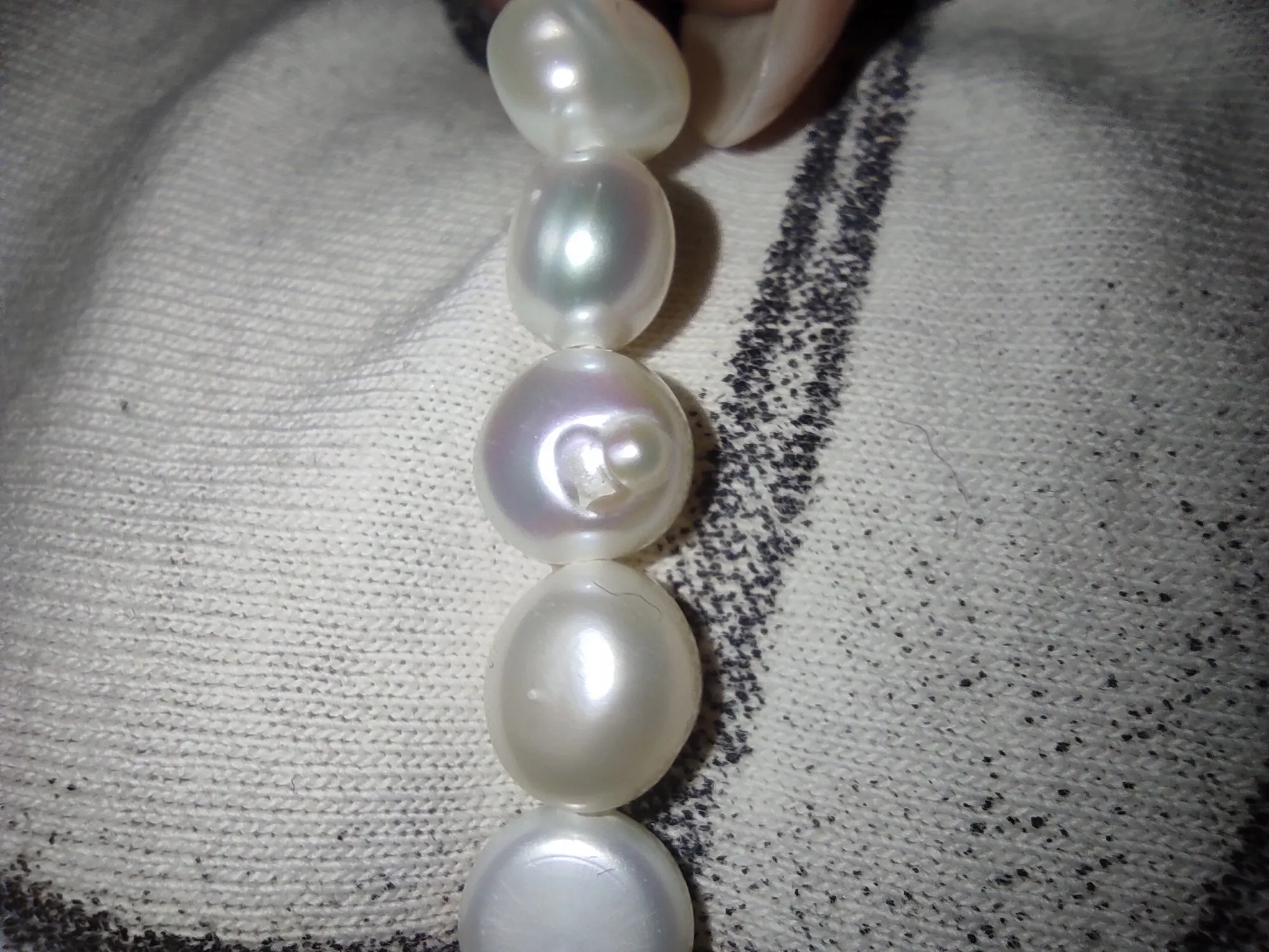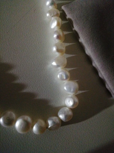 сплошная милота! ожерелье красивое, длинное как обещано, в комплекте мешочек и тряпочка. Жемчужинки с одной стороны плоские, руки чешутся расколотить одну и проверить на натуральность))