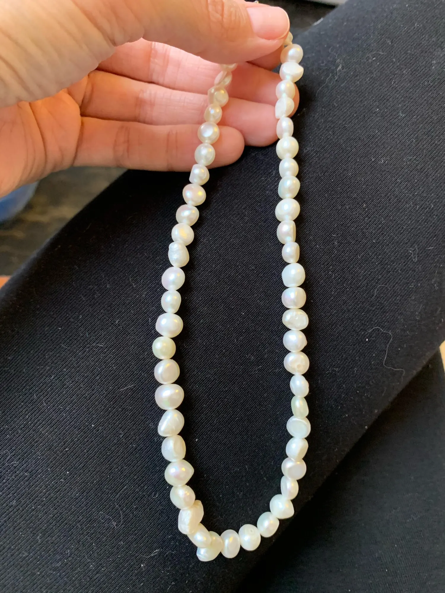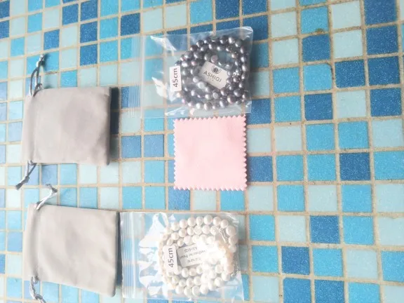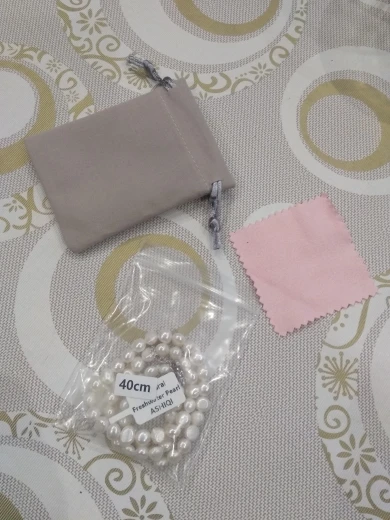 Жемчуг, конечно, разнокалиберный, но за эту цену отлично. доставка быстрая. В комплекте идёт мешочек кремового цвета и салфеточка для ухода
