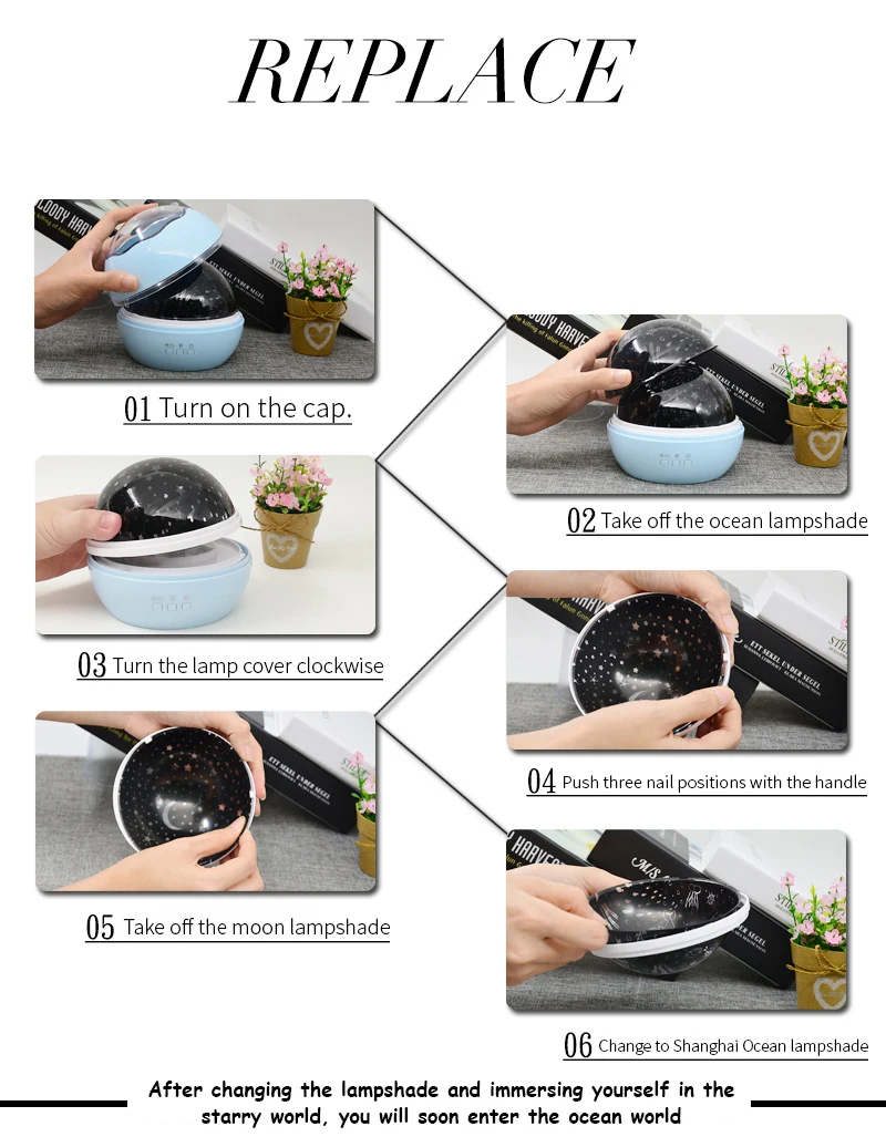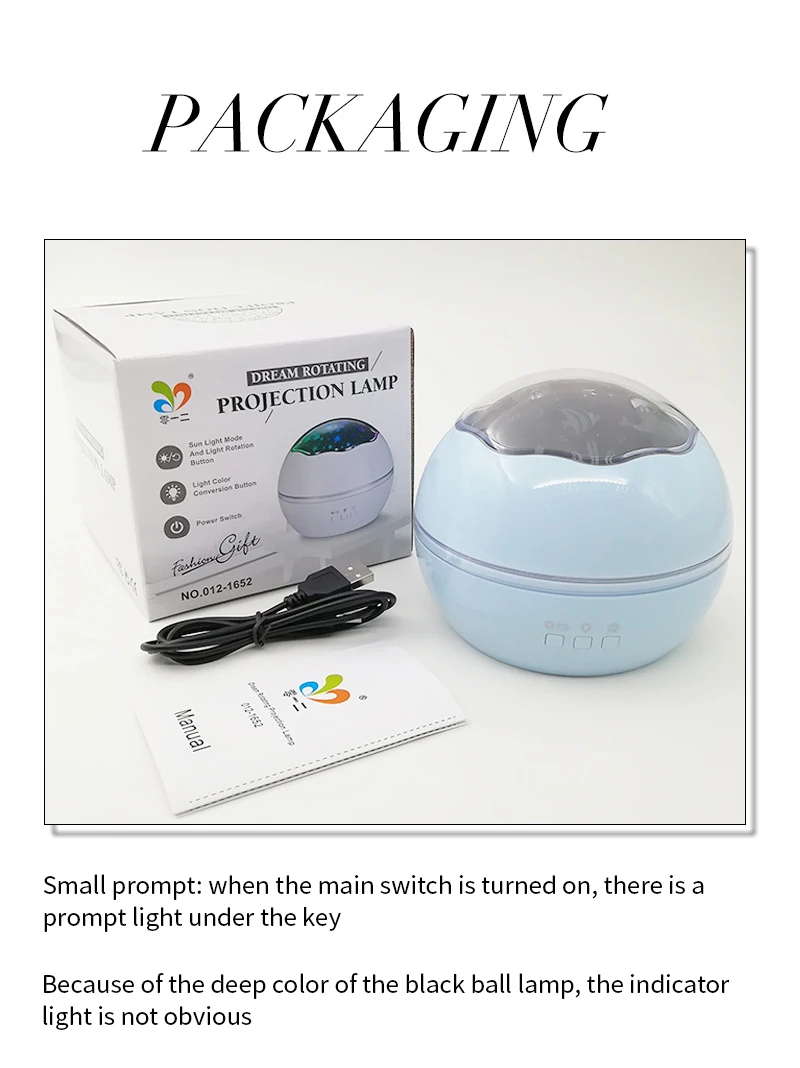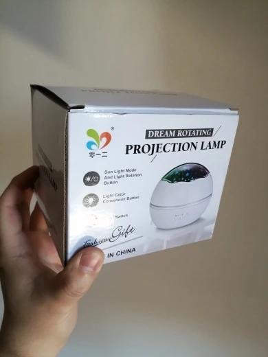 Доставка быстрая, меньше двух недель. Трек отслеживался. Упаковка пакет и пленка с воздушными пузырьками в которую завернуть коробка с светильником. Описанию соответствует. Качество отличное. Небольшой пластиковый светильник, аккуратный, без постороннего запаха. В комплекте две вставки1-заездное небо, 2-морская. Работает от USB или от батареек. Можно менять цвет освещения, а так же есть функция вращения. Очень понравился. Спасибо продавцу.