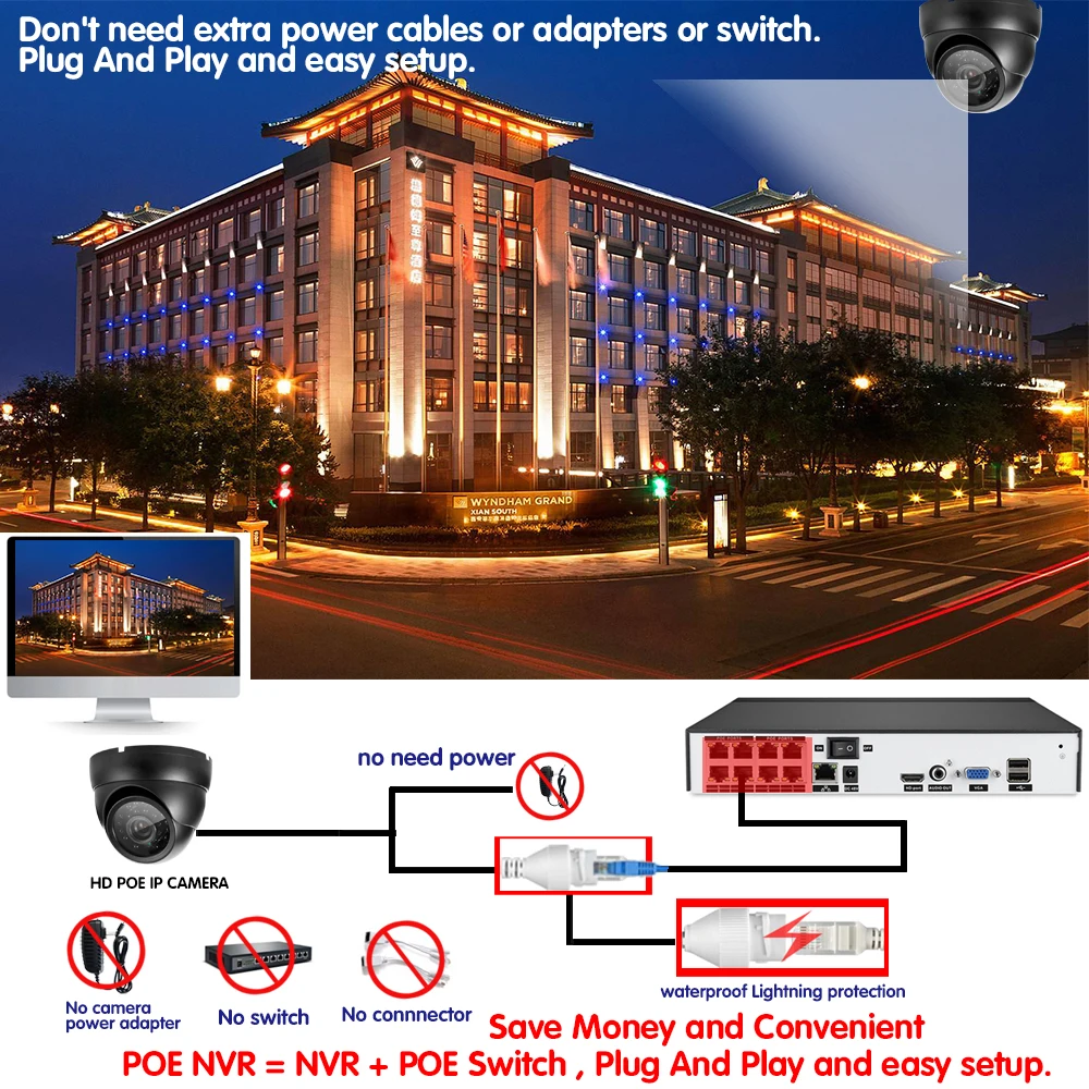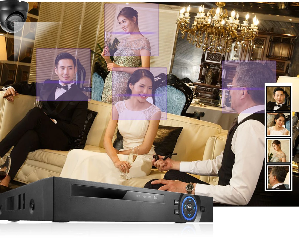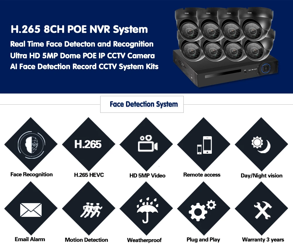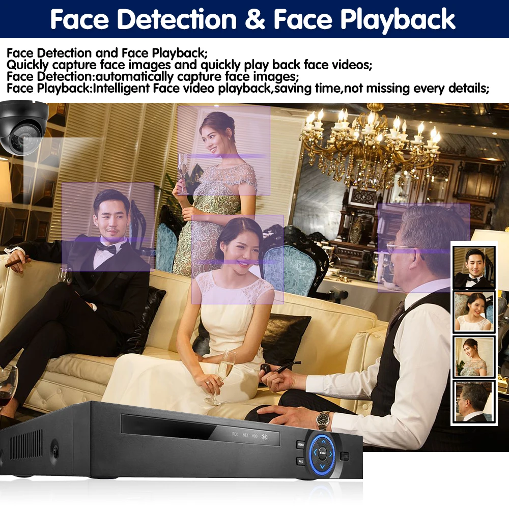 5,POE IP камера NVR система поддерживает запись лица, распознавание лица, умное воспроизведение лица, обнаружение движения и оповещения по электронной почте, IP66 Всепогодный, дневное ночное видение, Поддержка Android,Iphone,Ipad, ПК, VMS,P2P view;