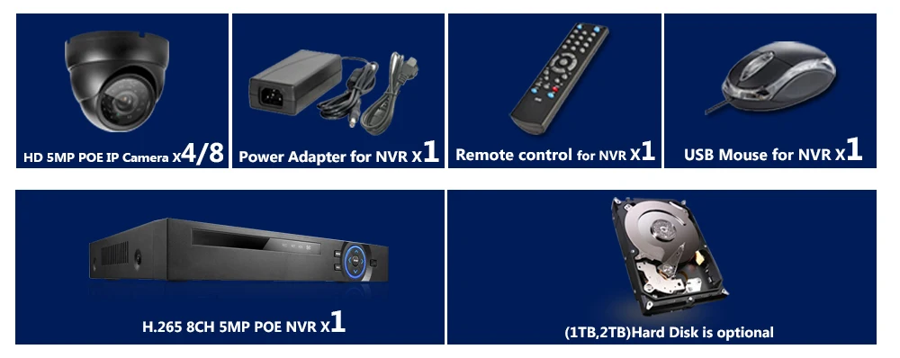 1,H.265 POE NVR система, NVR может поддерживать 5MP max, вы можете подключить 1MP, 2MP,4MP,5MP камеры с нашим NVR;