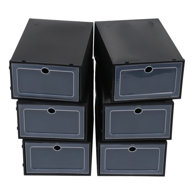 6 шт., прозрачная коробка для обуви, откидной дизайн, пластиковый чехол для хранения, органайзер, пылезащитный прозрачный пластиковый ящик для хранения обуви для дома, черный цвет