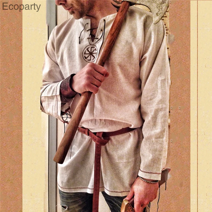 Костюм Рыцаря средневекового цвета для мужчин, длинная рубашка вики...