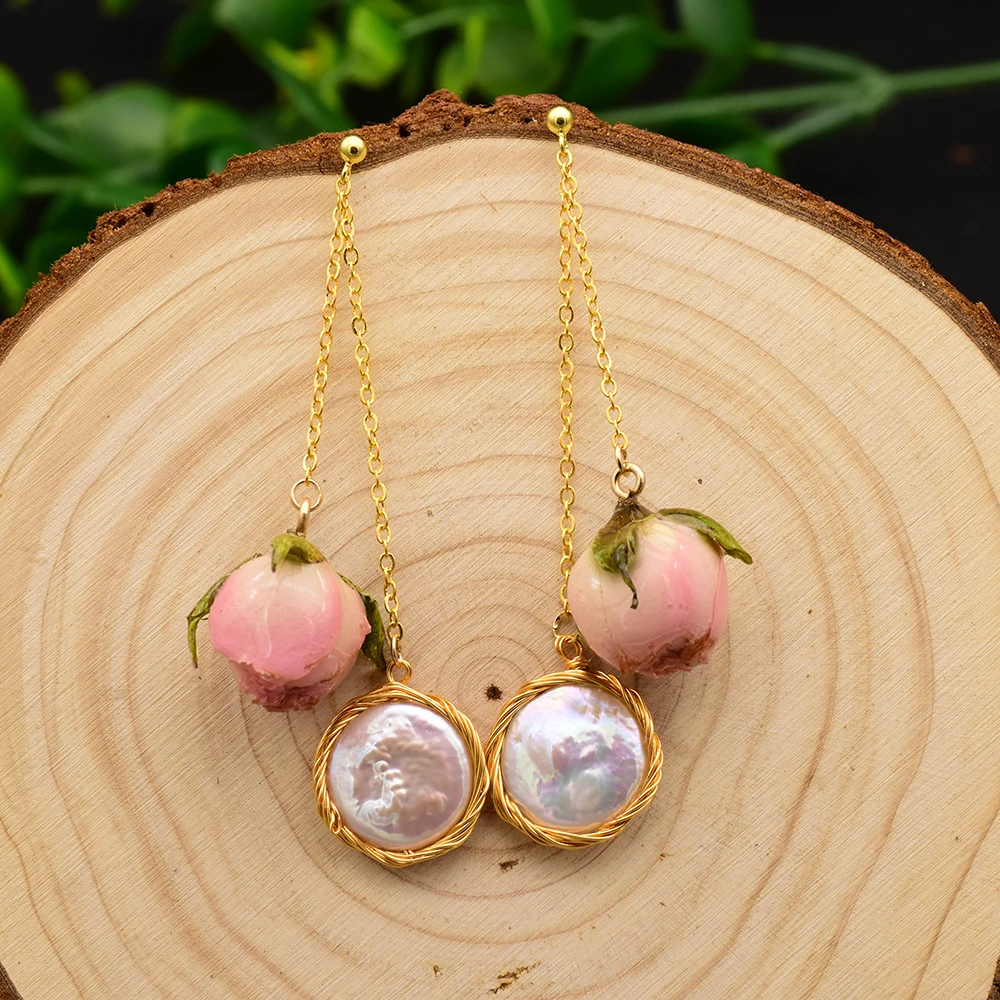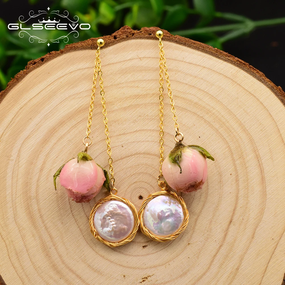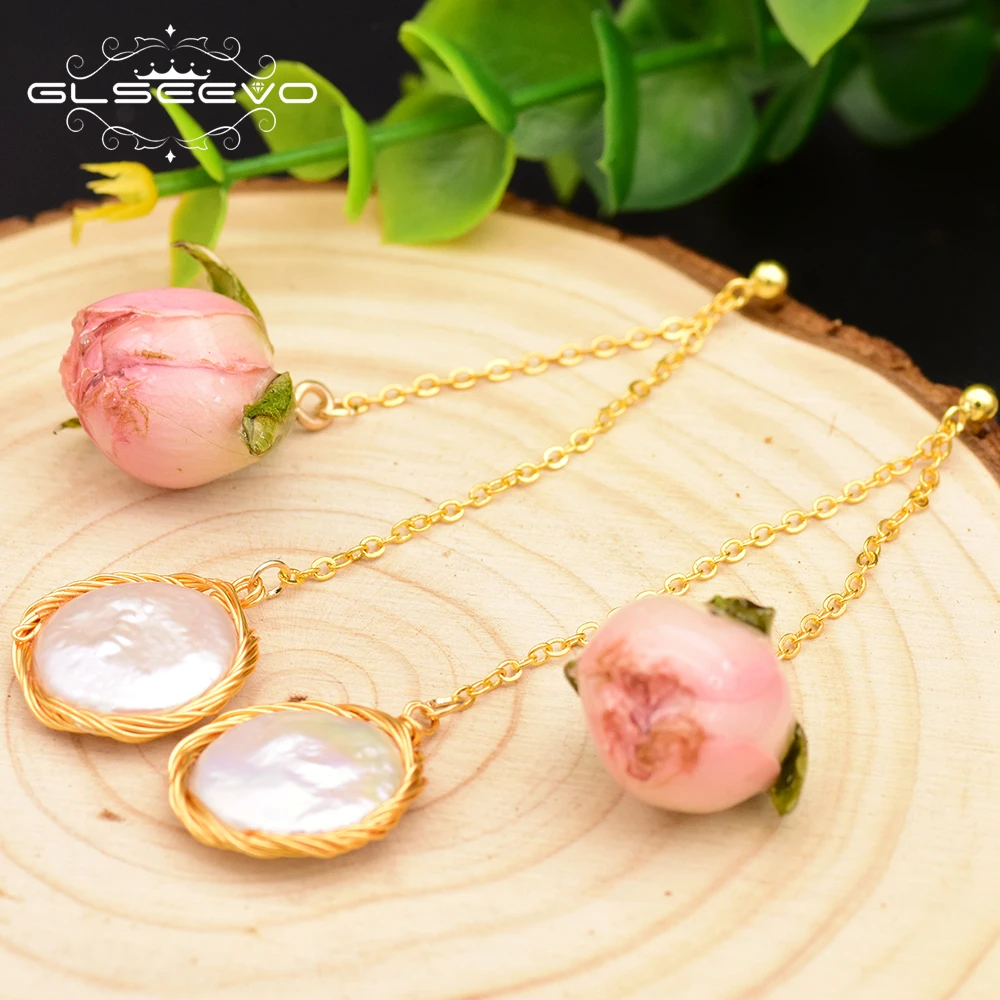 Оригинальные женские серьги-подвески GLSEEVO в виде реальных цветов, модные ювелирные украшения для вечеринок GE0492E