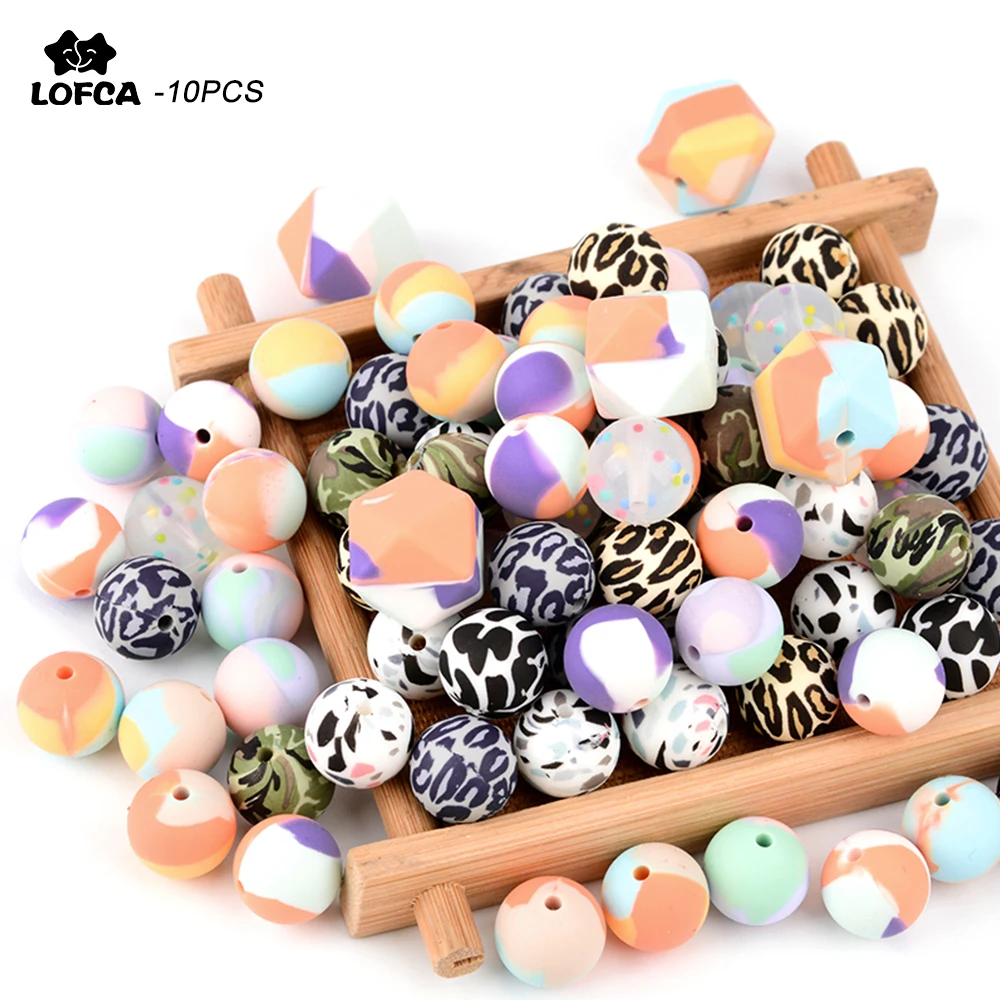 LOFCA далматинские силиконовые бусины 10 шт. без бисфенола А 9121519 мм леопардовые камуфляжные силиконовые шестигранные бусины для прорезывания зубов с конфетти