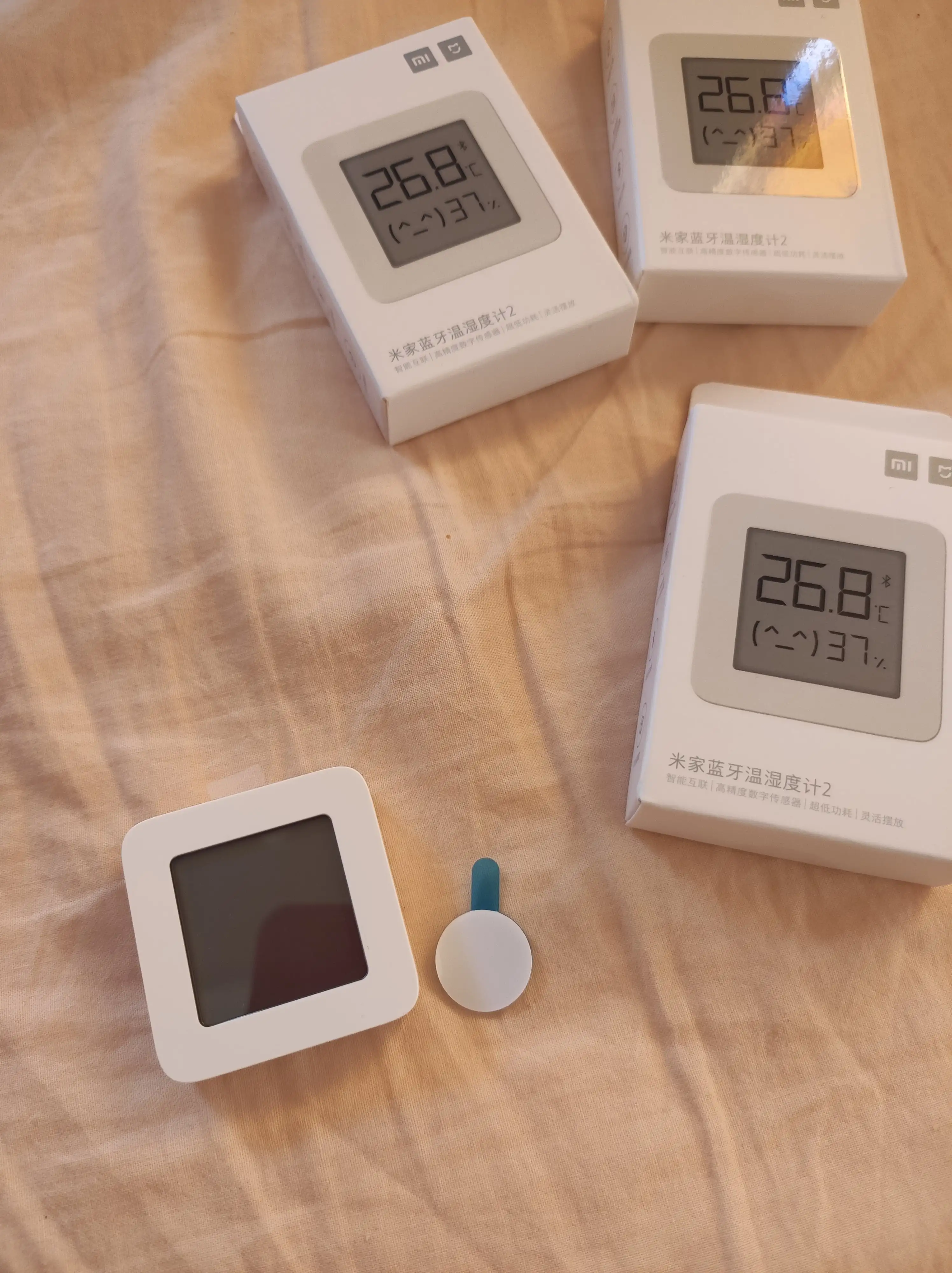 Хорошие термометры , прилепил в каждую комнату . В приложении MI Home настаиваешь , пишешь в приложении название комнаты где он находится . Есть ещё график температуры и влажности. Можете статистику посмотреть за неделю или месяц. Очень чувствительные , берёшь в руки сразу меняется температура и влажность . Приклеивайте подальше от тепловых и влажных приборов , чтоб адекватно показывали .