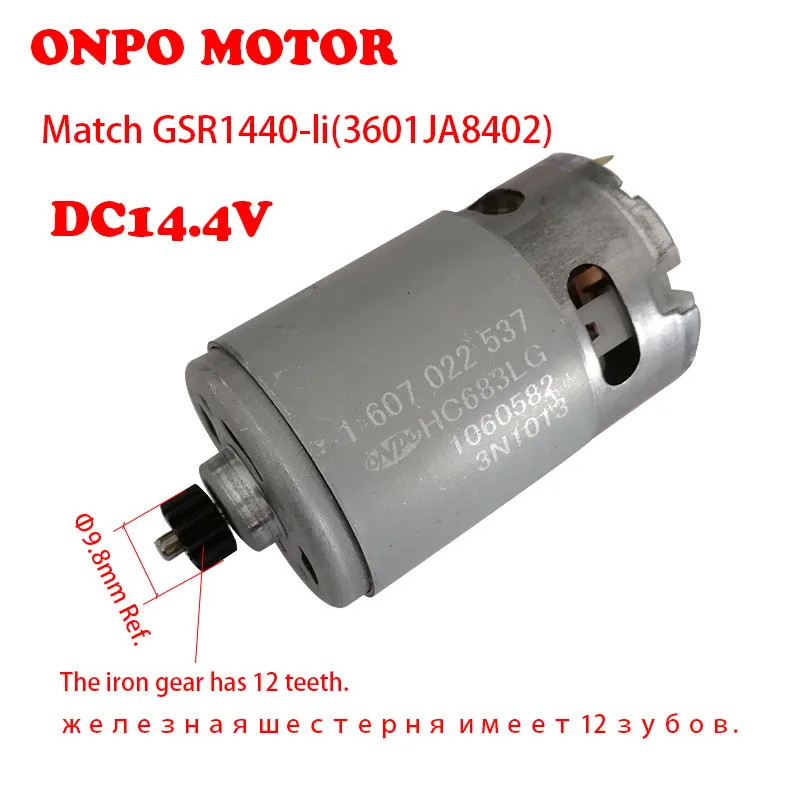 Мотор-редуктор ONPO 1607022537, 12 зубьев, для BOSCH DC14.4V TSR144...