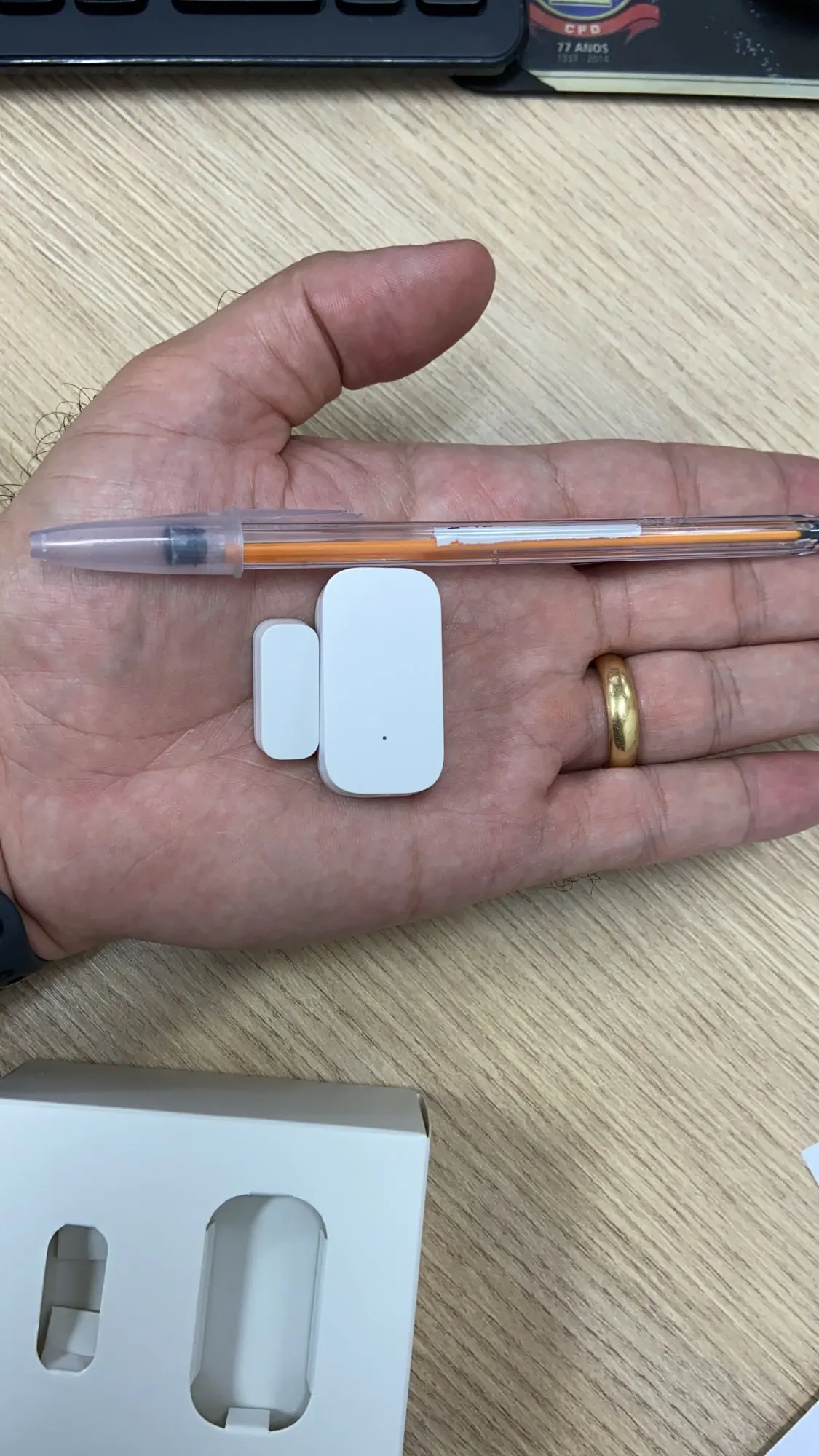 Работает, сразу со вставленной батарейкой. Маленький вообще, не ожидал. Там магнит и видимо датчик Холла. Лампочка мигает при смене состояния (движении рядом)
