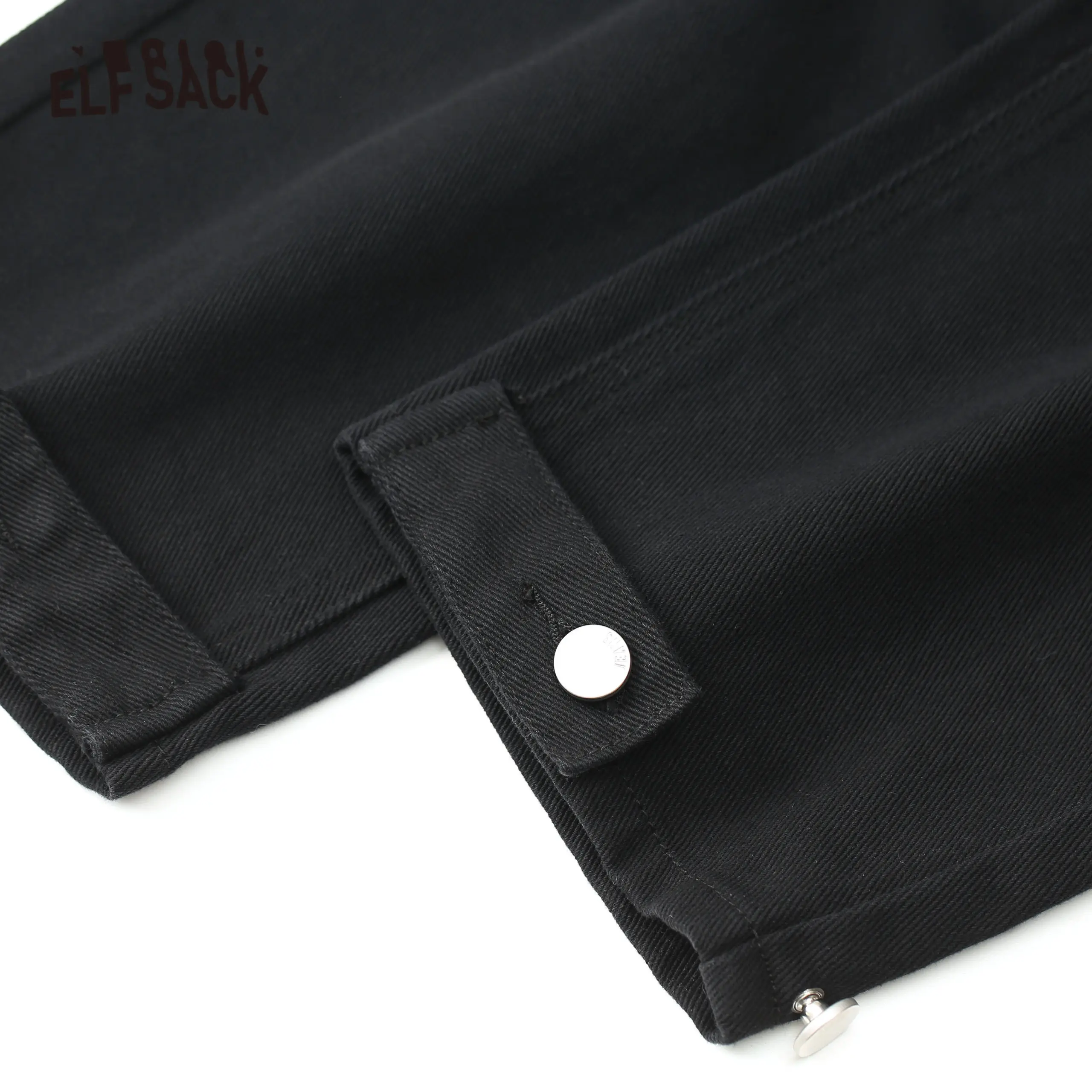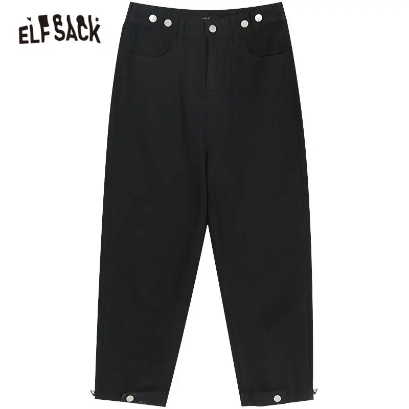 Женские шаровары ELFSACK, черные однотонные повседневные свободные штаны с высокой талией в Корейском стиле для ежедневной носки, весна 2020