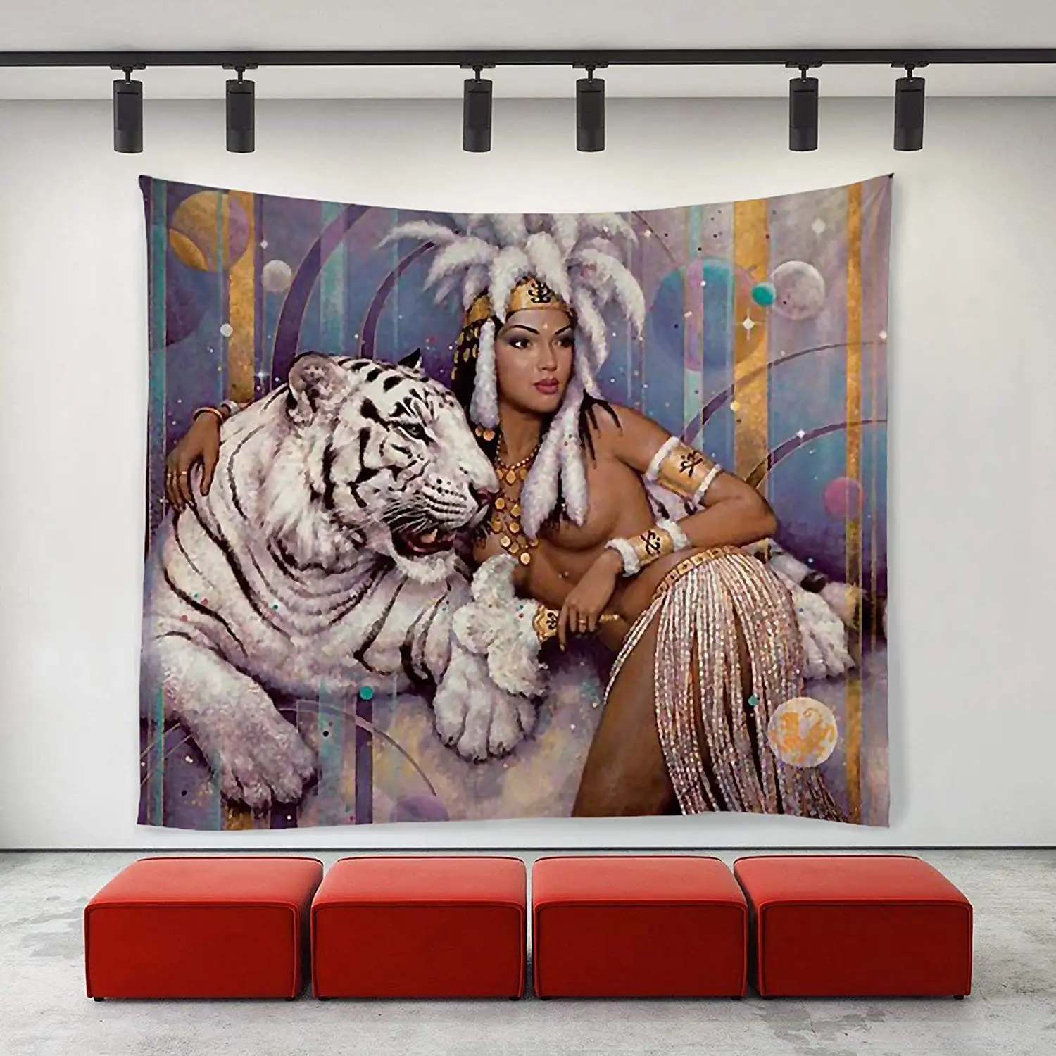 Африканский белый тигр и женщины гобелены стены искусства хиппи спальни гостиной общежития