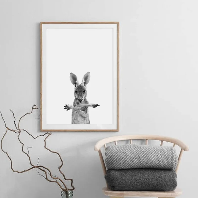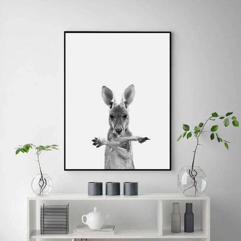 Австралийское животное кенгуру, нордическая черно-белая фотография, модульная печать, картина для украшения дома, живопись, холст, плакат, настенное искусство