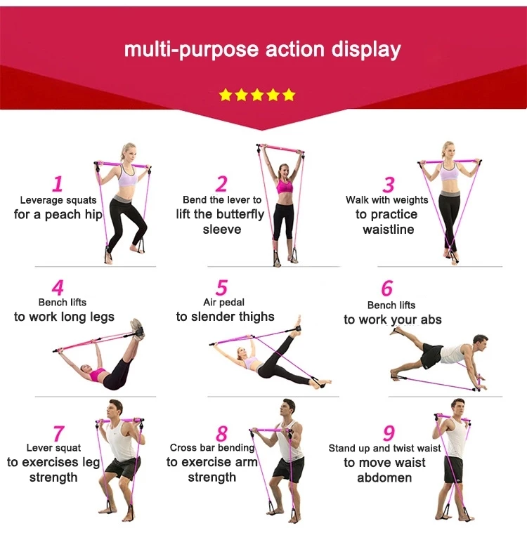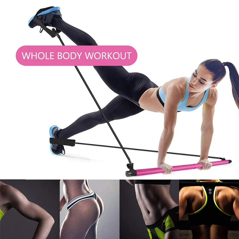 Портативная палочка для занятий йогой, пилатесом, с эластичным ремешком, для домашнего тренажерного зала, для тонизирования мышц, для фитнеса, растяжки, спортивных упражнений