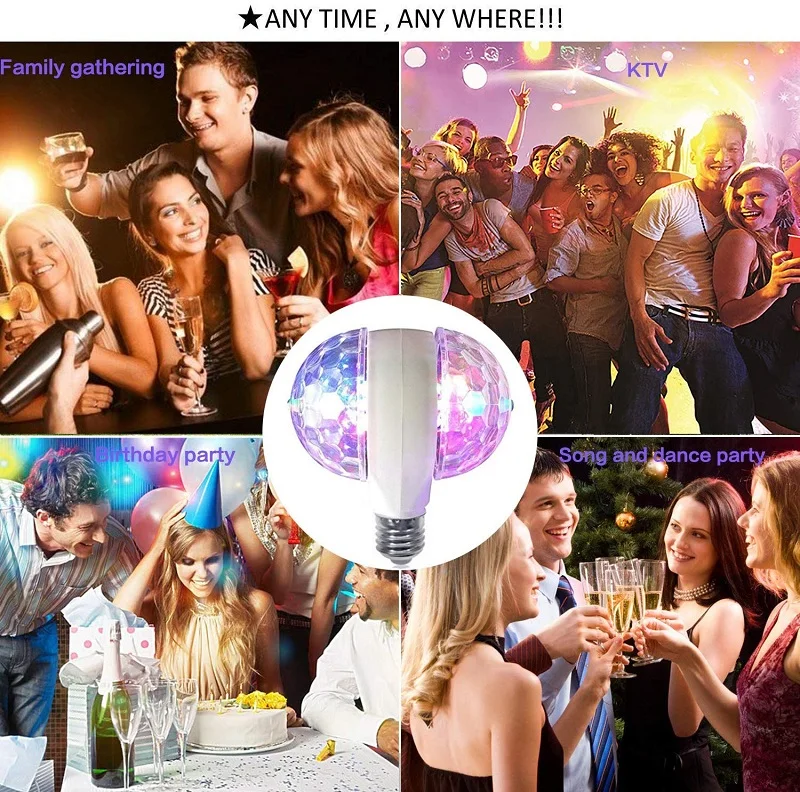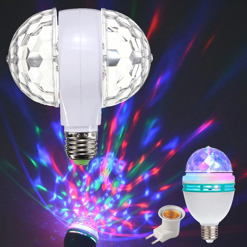 Дискотечный Светильник E27 RGB, автоматический вращающийся двухсторонний светильник, дискотека, кристалл, волшебный шар, праздничное светильник для вечеринок, бар, KTV
