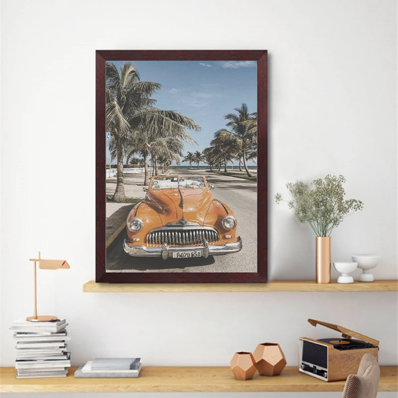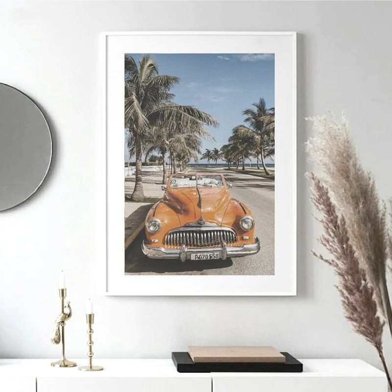 Пляжный Пейзаж Кубы фотография плакат винтажный автомобиль Пальма холст печать Пляж Лето чувство стены Искусство Живопись Домашний Декор
