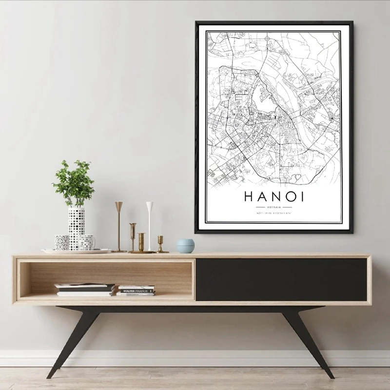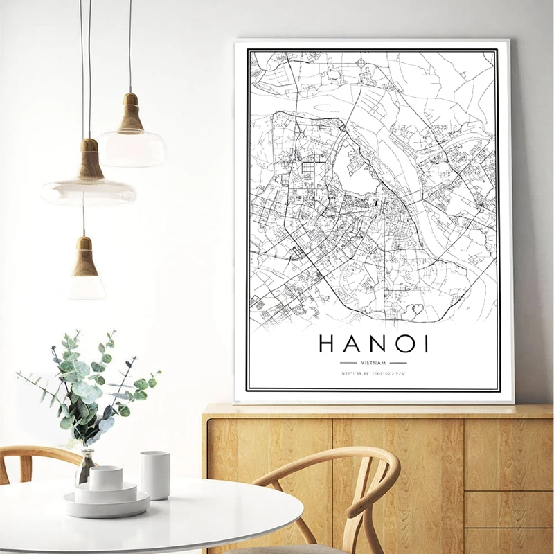 Карта города Ханоя, принты, Вьетнам, черно-белая карта, холст, плакат, Современная Настенная картина, украшение для дома, картина, подарок путешественника