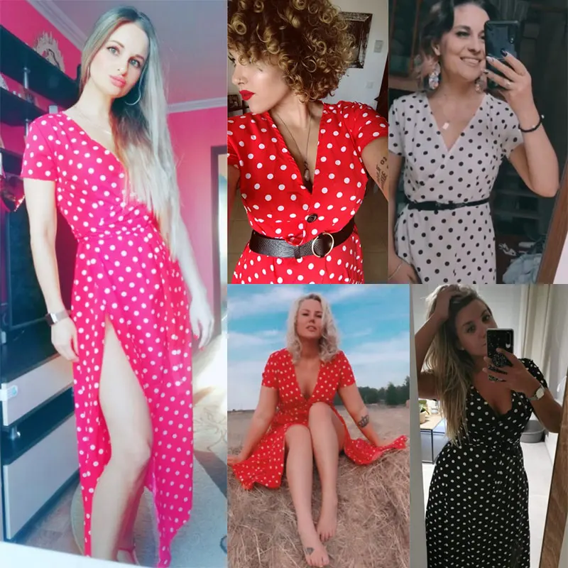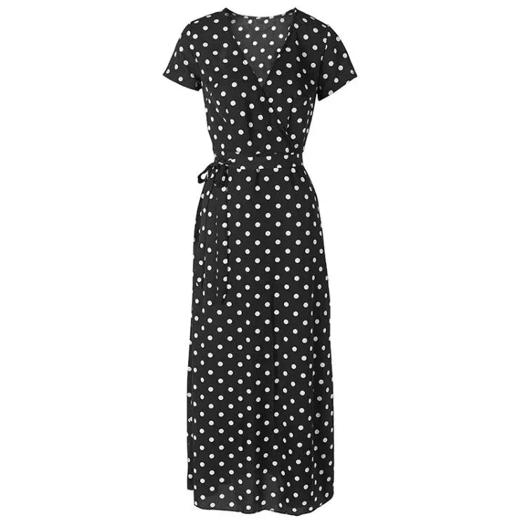 Летнее женское платье в стиле бохо 2022, сексуальное пляжное платье с V-образным вырезом и коротким рукавом, повседневное длинное платье в горошек, винтажные вечерние платья