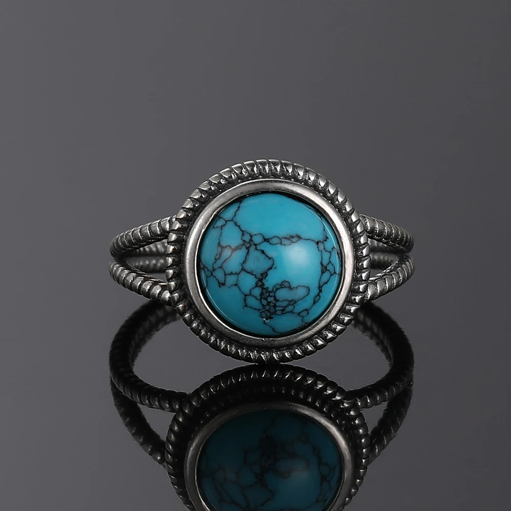 Женское кольцо из серебра 925 пробы, с круглым натуральным бирюзовым покрытием 10 мм
