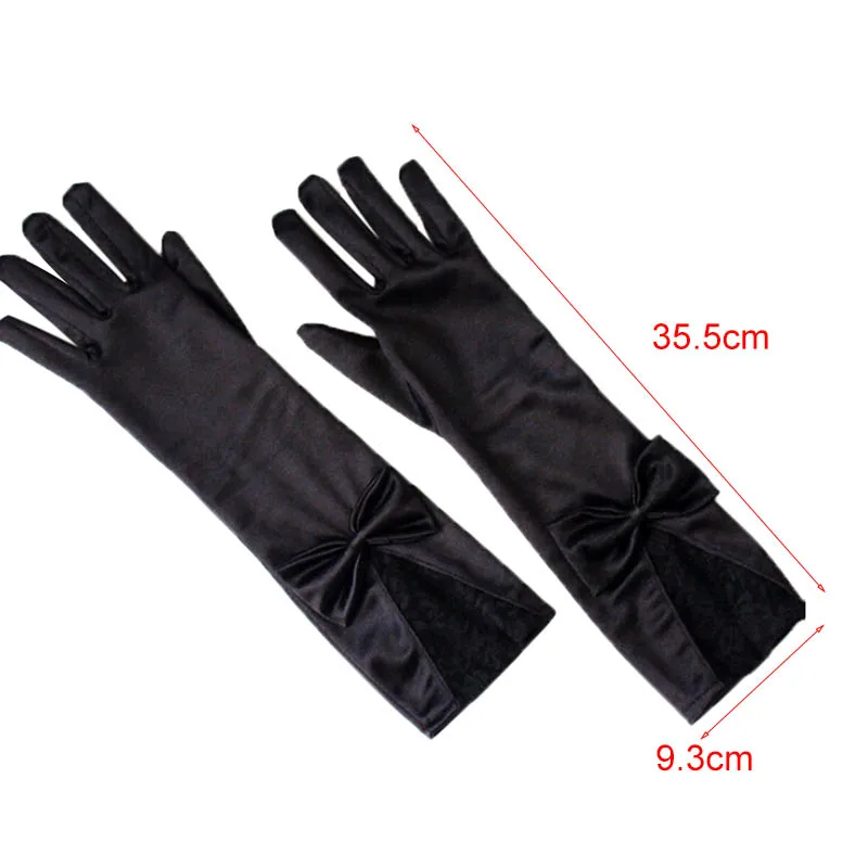 Женские сексуальные белые черные кружевные лоскутные атласные перчатки с бантом, Клубная одежда, вечерние танцевальные перчатки, аксессуары USD 1,21/Пара/Лот 1