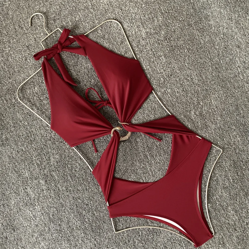 Новинка 2021, женский слитный купальник, сплошная цепочка, бандажны...