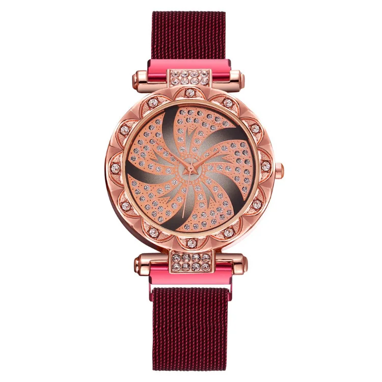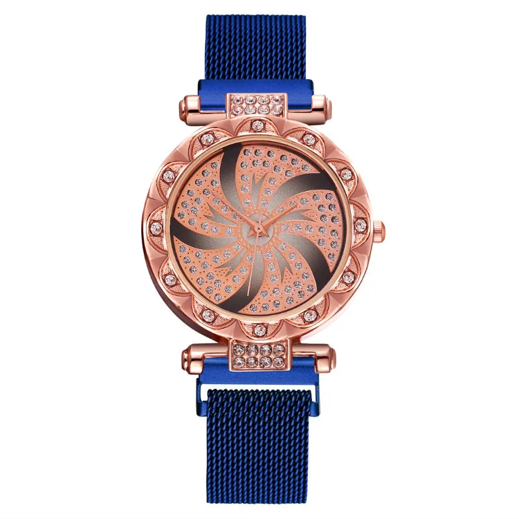 Роскошные женские часы с магнитной стальной сеткой, модные женские часы с бриллиантами, женские часы с браслетом из розового золота со стразами, наручные часы