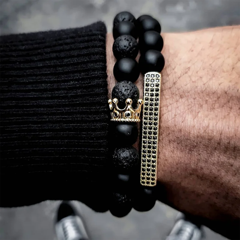 Браслет мужской, из лавового камня, с прямоугольными бусинами, классический, 2020