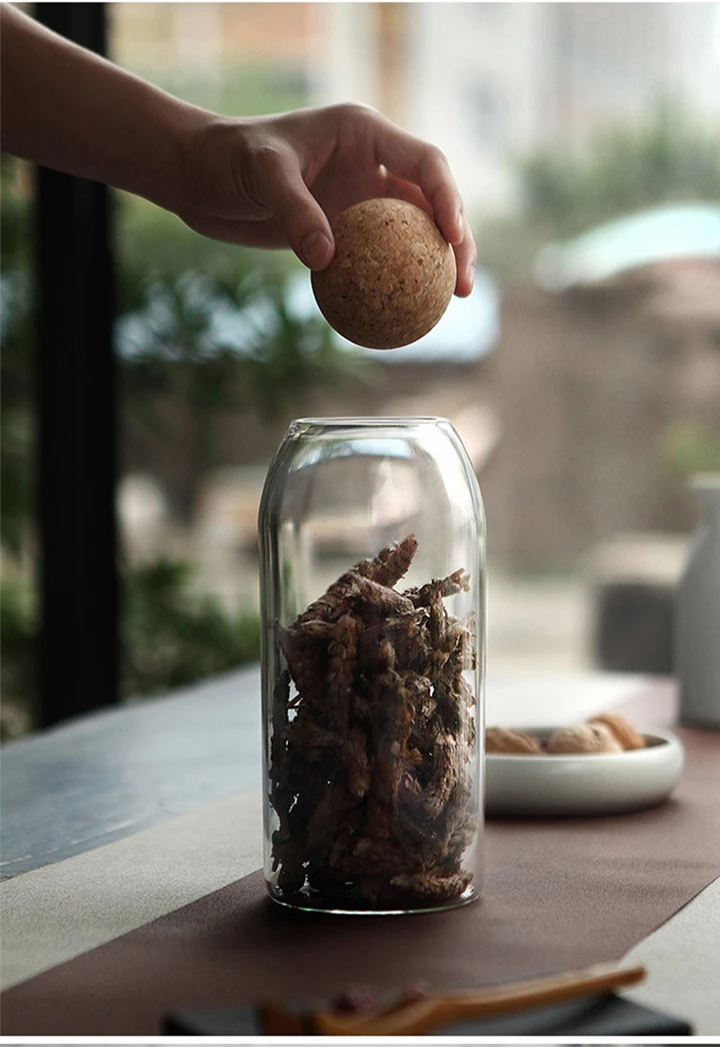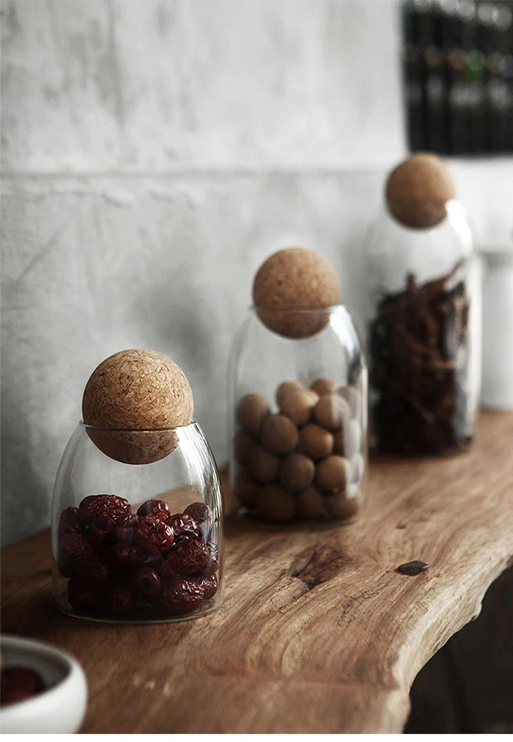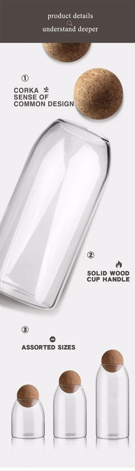 Креативная банка из боросиликатного стекла, емкость для хранения сыпучих продуктов с Пробковой Крышкой, контейнер для сахара, кофе, кухонный Органайзер