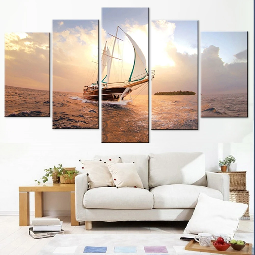 Wall Art рама холст HD печати живопись Домашний Декор 5 шт. парусник солнце плакат Современный Морской парусный спорт картина с изображением лодки