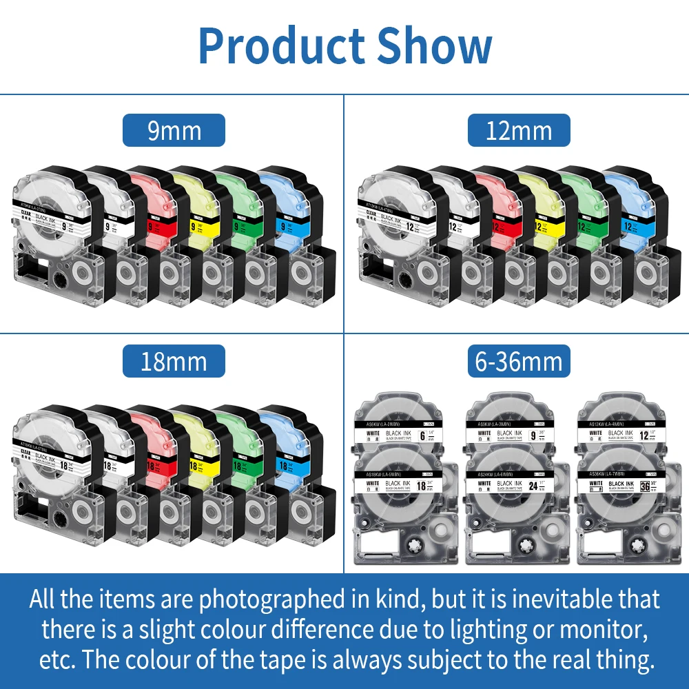 Бренд: UnistarТовар: SS12KW ST12KW SS9KW SS18KW SS24KW...Характеристики: 100% совместимость с принтером Epson и King JimЦвет: черный на белом/прозрачный/желтый/золотой/зеленый... многоцветныйРазмер: 6 мм/9 мм/12 мм/18 мм/24 мм * 5 м/8 мКоличество: 1 шт./лот