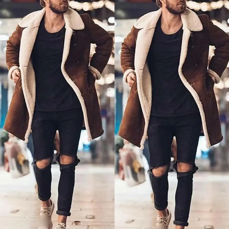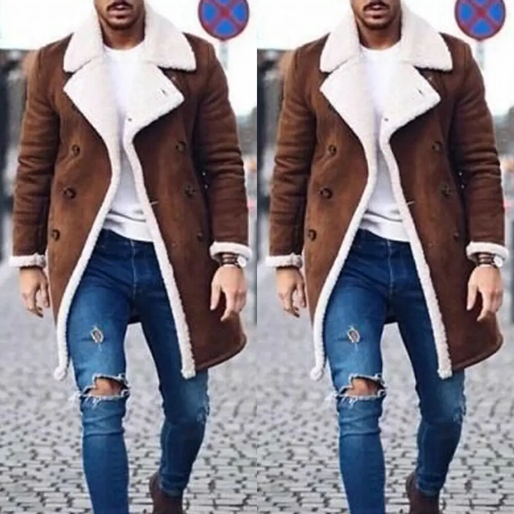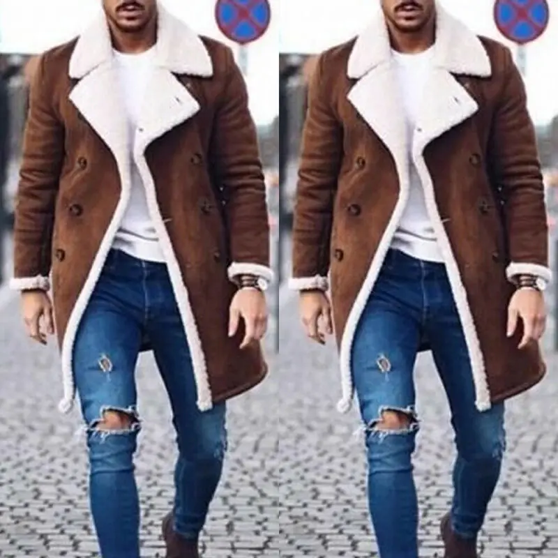 Модное мужское пальто, меховой флисовый Тренч, двубортное пальто, зимняя куртка, топы