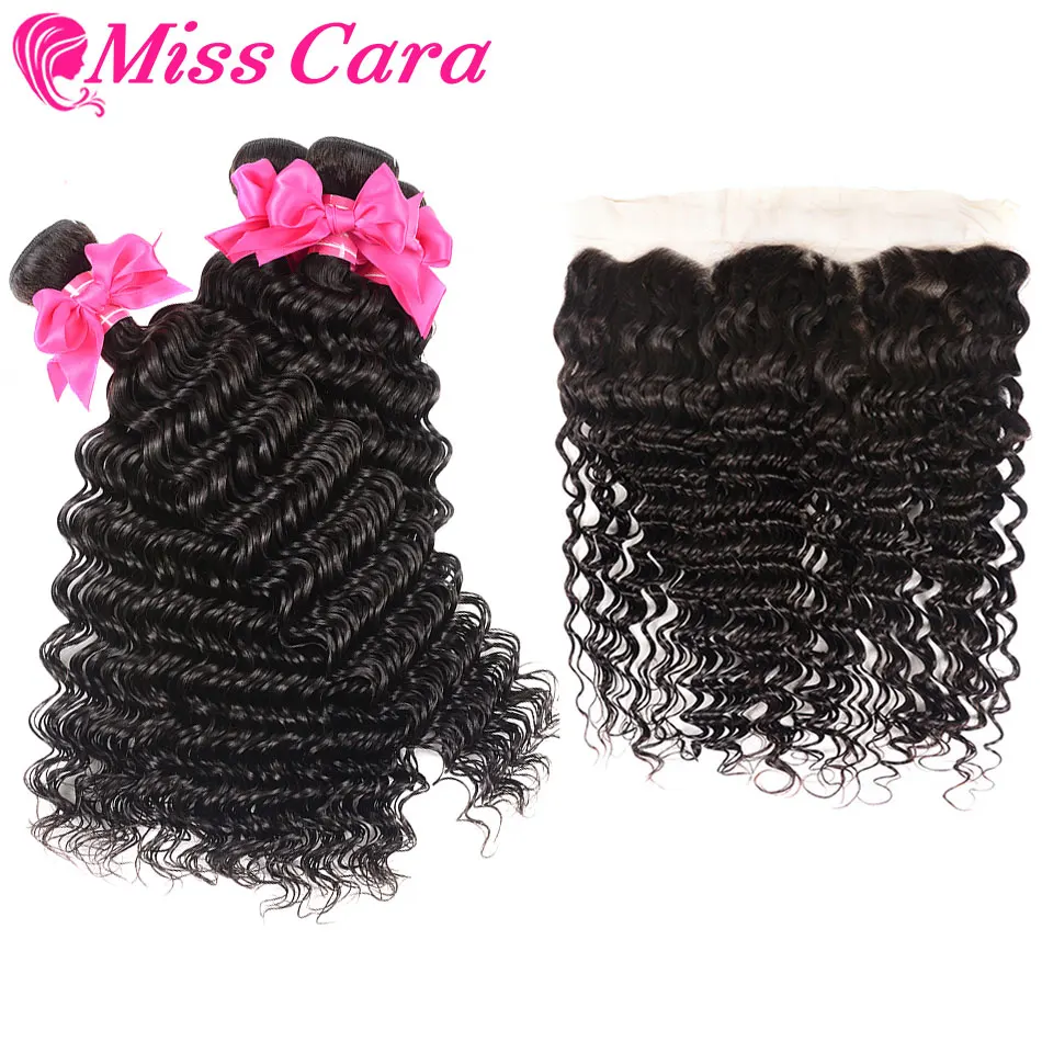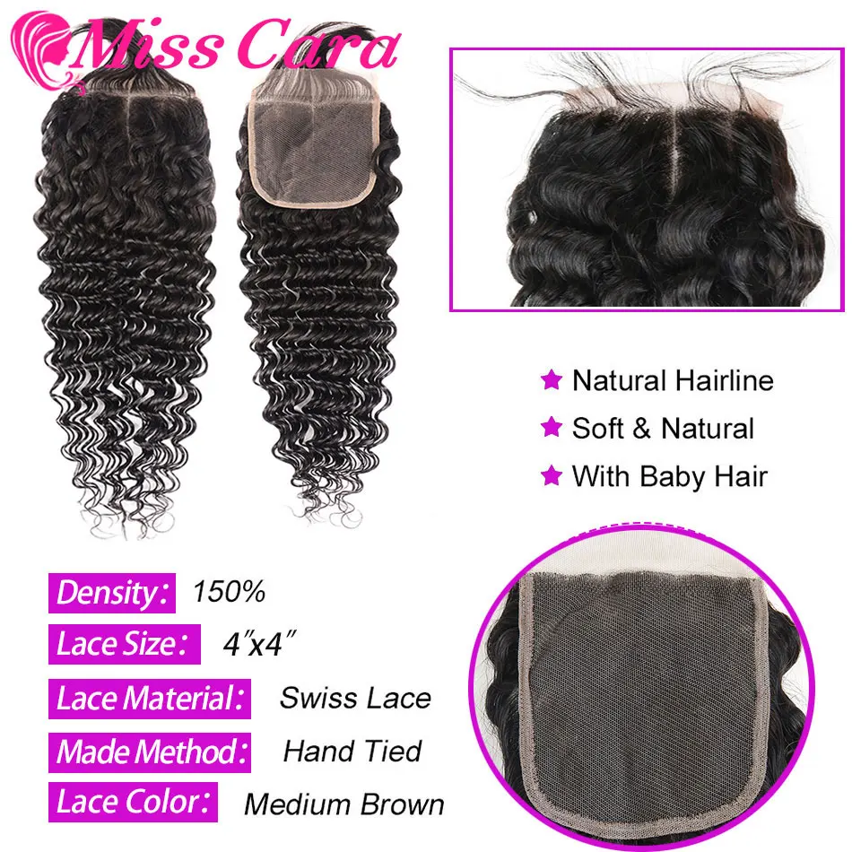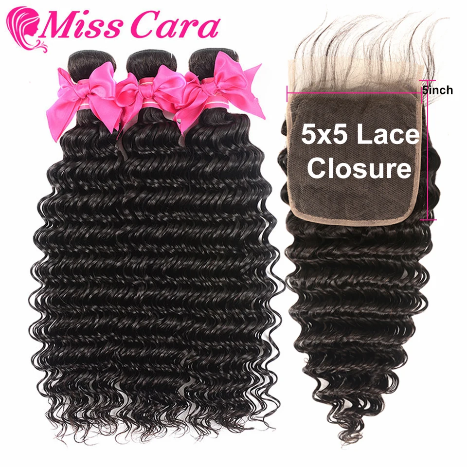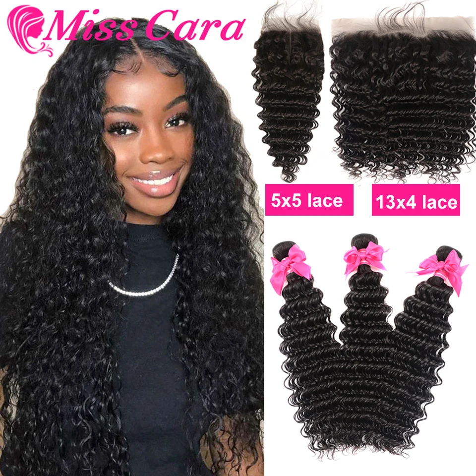 5X5 HD Прозрачная Кружевная застежка с пряди перуанских волос глубокая волна пряди с фронтальной 100% Мисс Кара Реми человеческие волосы с закрытием