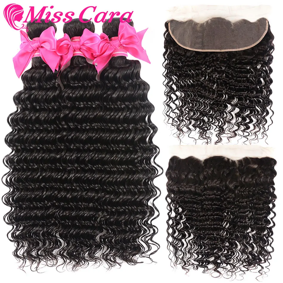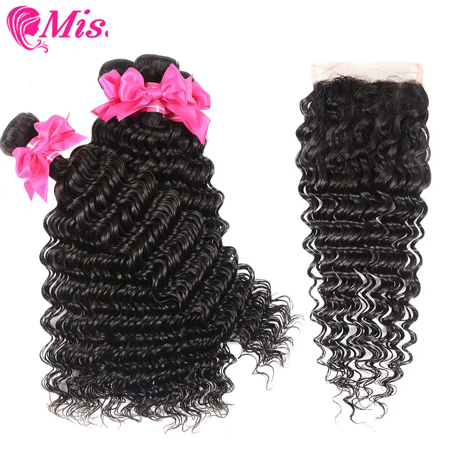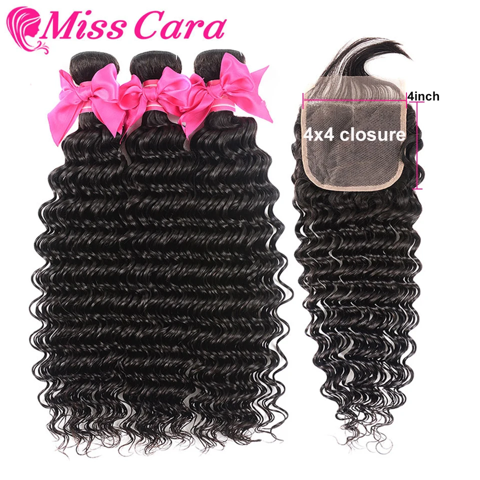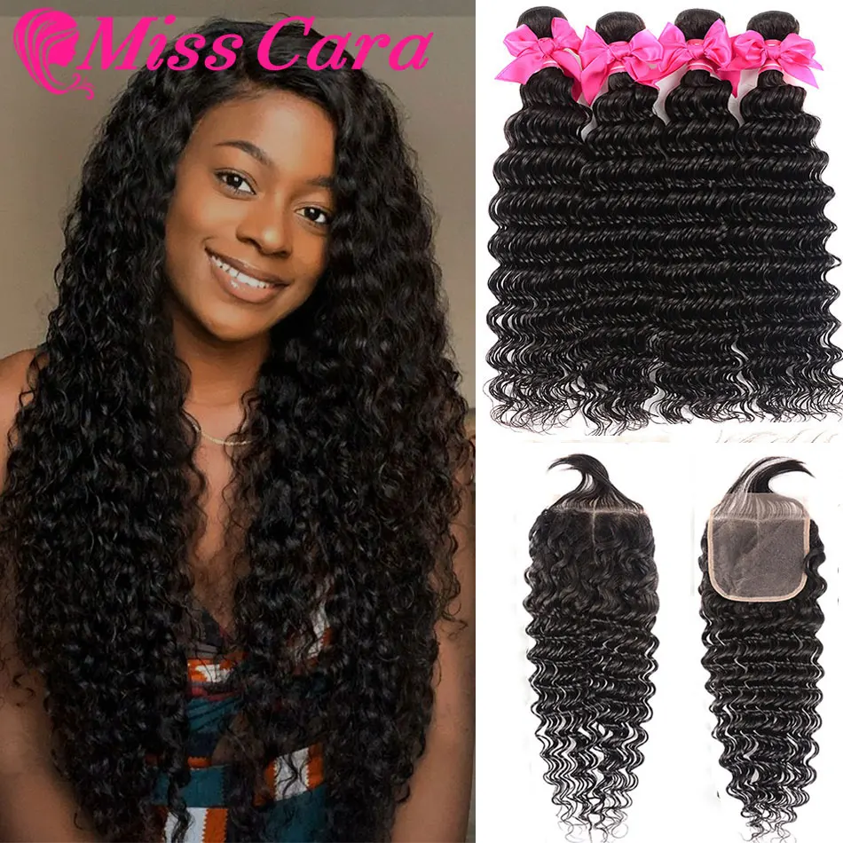5X5 HD Прозрачная Кружевная застежка с пряди перуанских волос глубокая волна пряди с фронтальной 100% Мисс Кара Реми человеческие волосы с закрытием