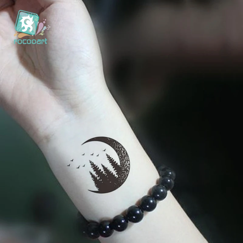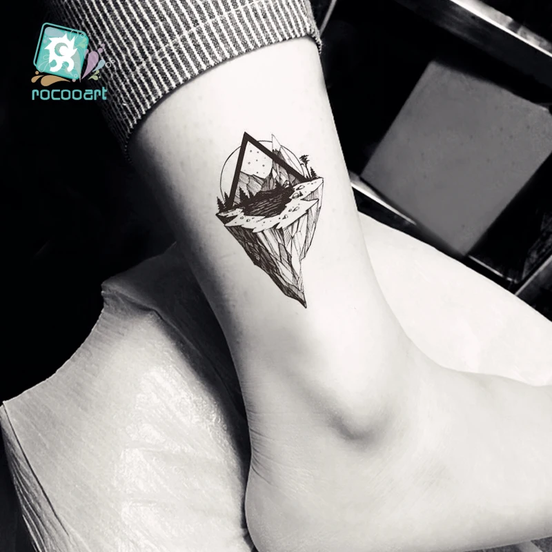 Переводные татуировки, планета, солнце, гора, сосна, наклейка, треугольная волна, татуировка, боди-арт, рука, черная, маленькая, поддельная татуировка, бесплатная доставка