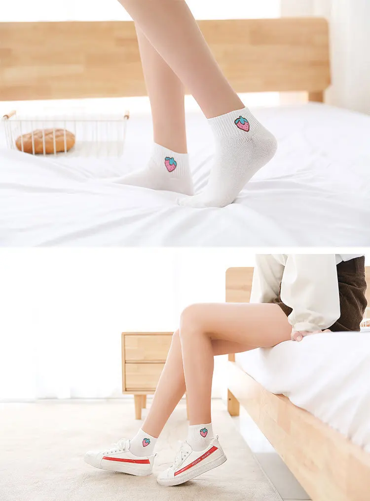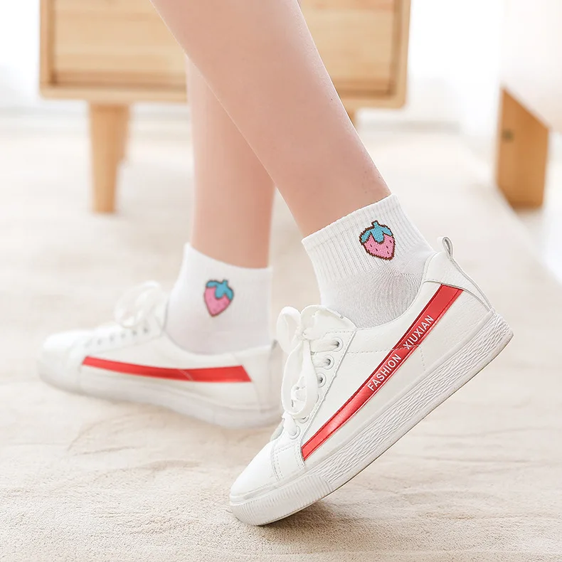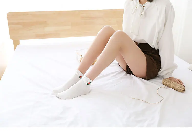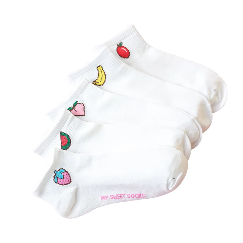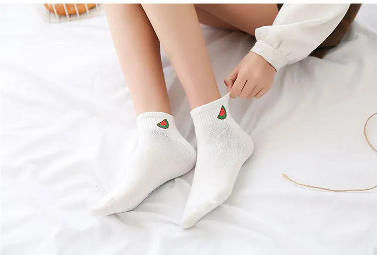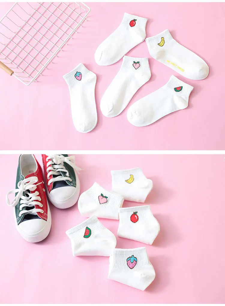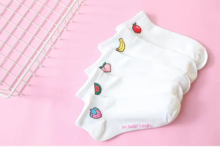 Носки-невидимки женские с цветными фруктами, удобные милые хлопковые короткие носки-следки до щиколотки для девочек, 1 пара = 2 шт., ws194, на лето