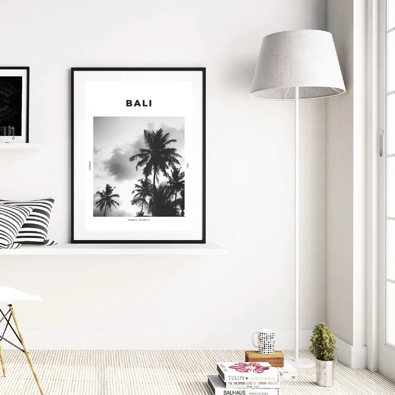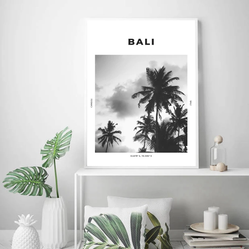 Плакат на Бали настенные художественные рисунки для путешествий черно-белые координаты Декор Canggu Ubud пальмовое дерево тропический Холст Картина домашний декор