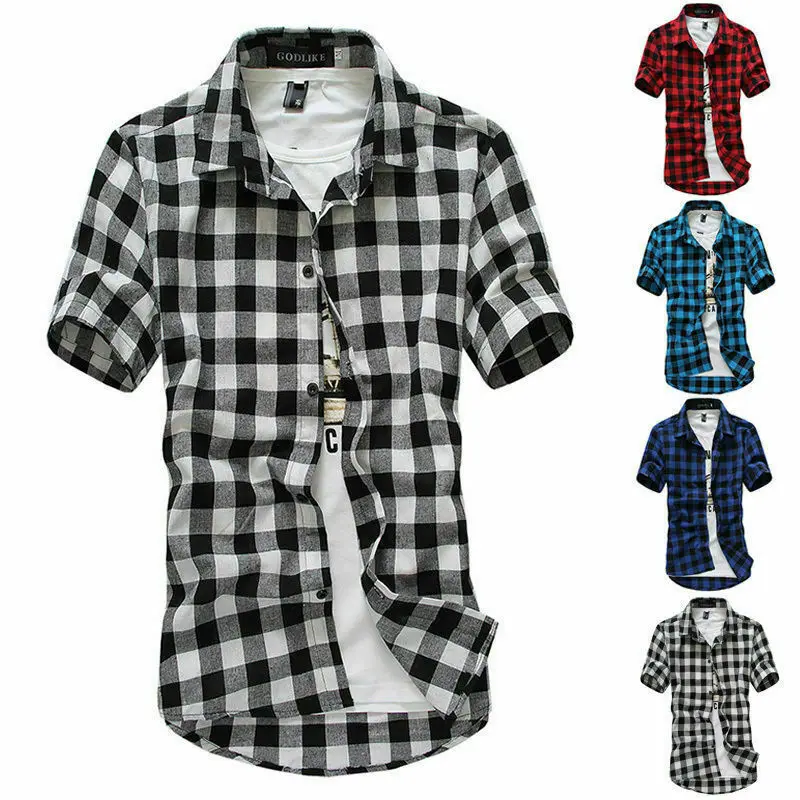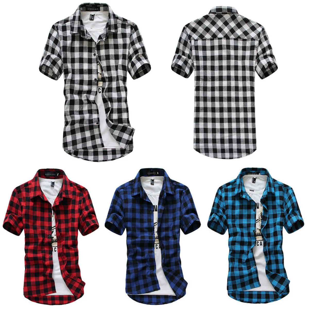 Мужская повседневная приталенная рубашка, клетчатая рубашка с коротким рукавом для отдыха, новинка, Лидер продаж