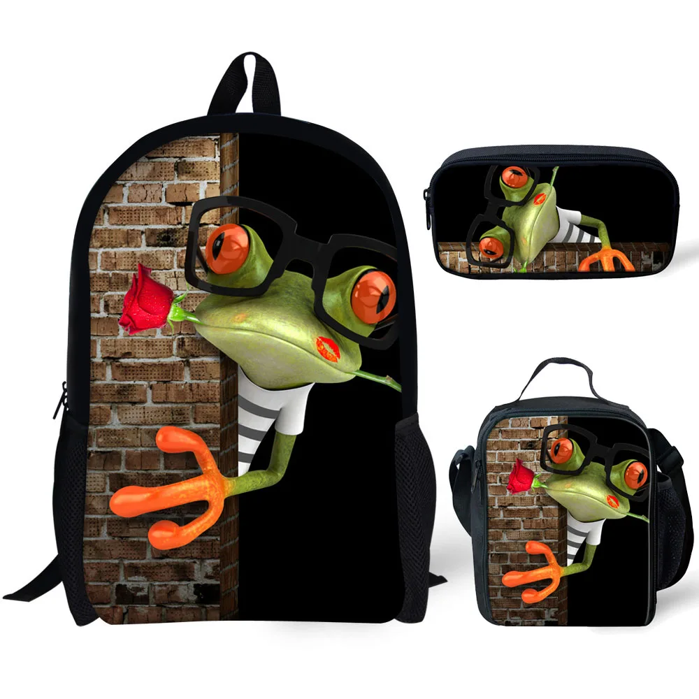 Персонализированные школьные ранцы с 3D-принтом лягушки, школьные ранцы для девочек-подростков, набор из 3 предметов, рюкзак, школьная сумка, детский рюкзак