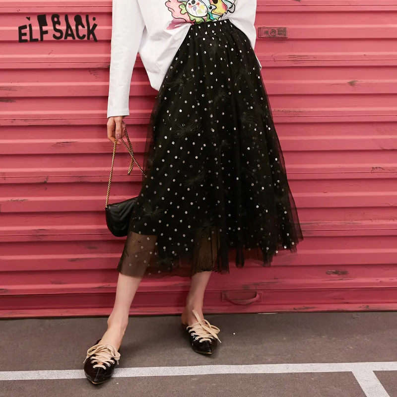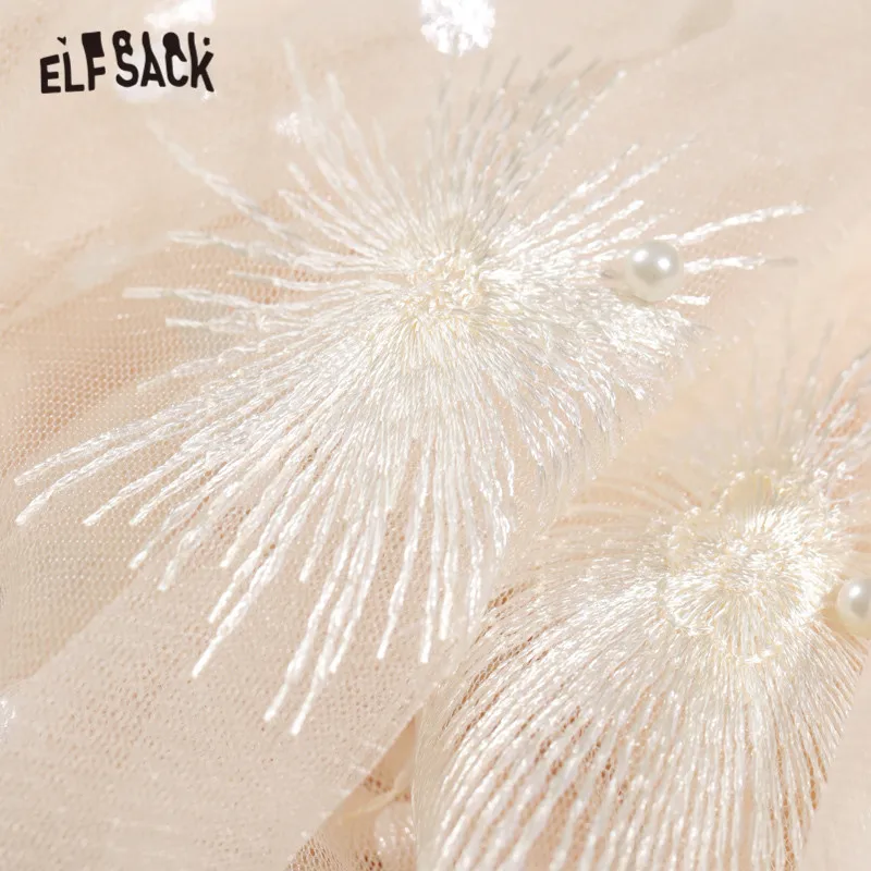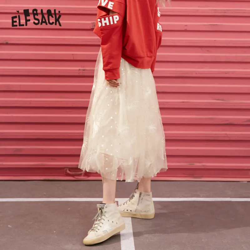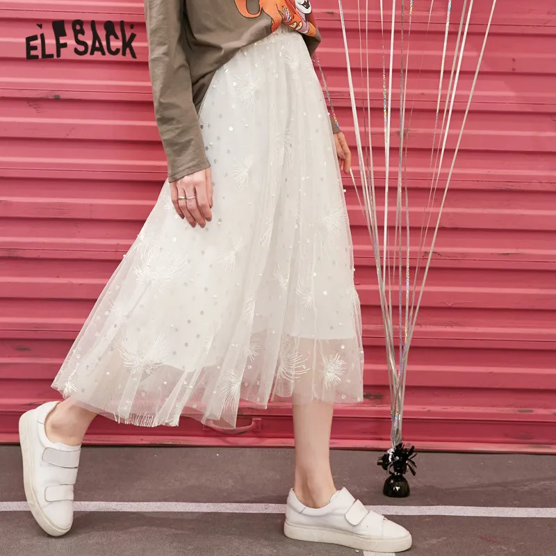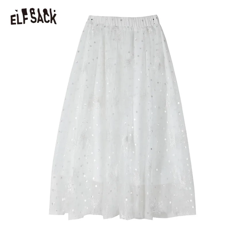 Женская многослойная юбка ELFSACK, белая элегантная повседневная юбка в горошек с вышивкой и жемчугом, весна 2020