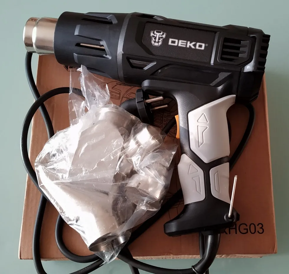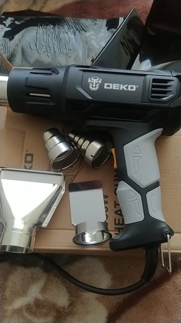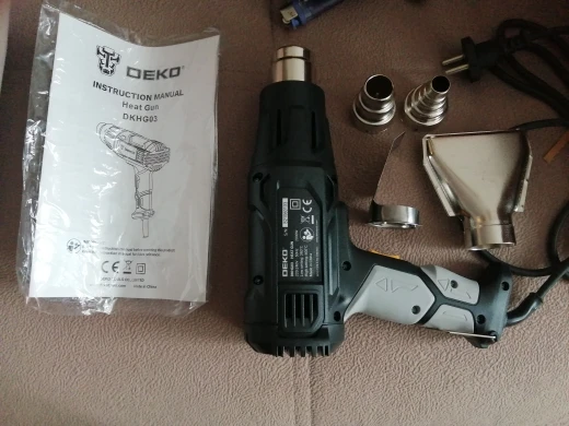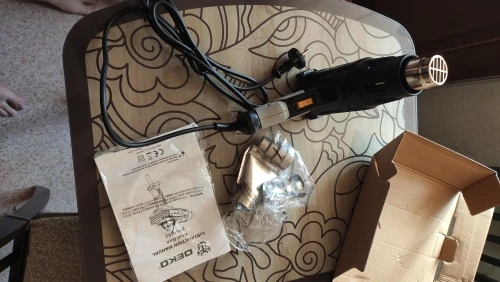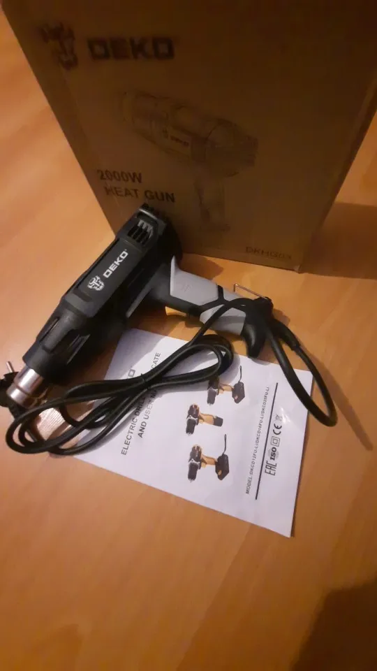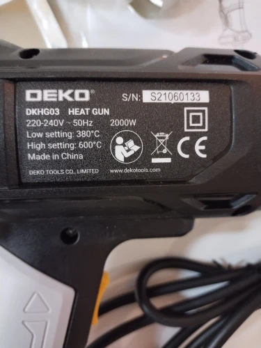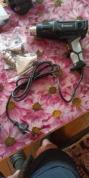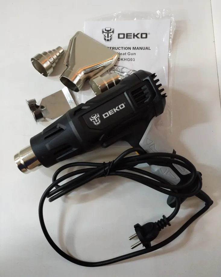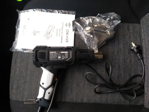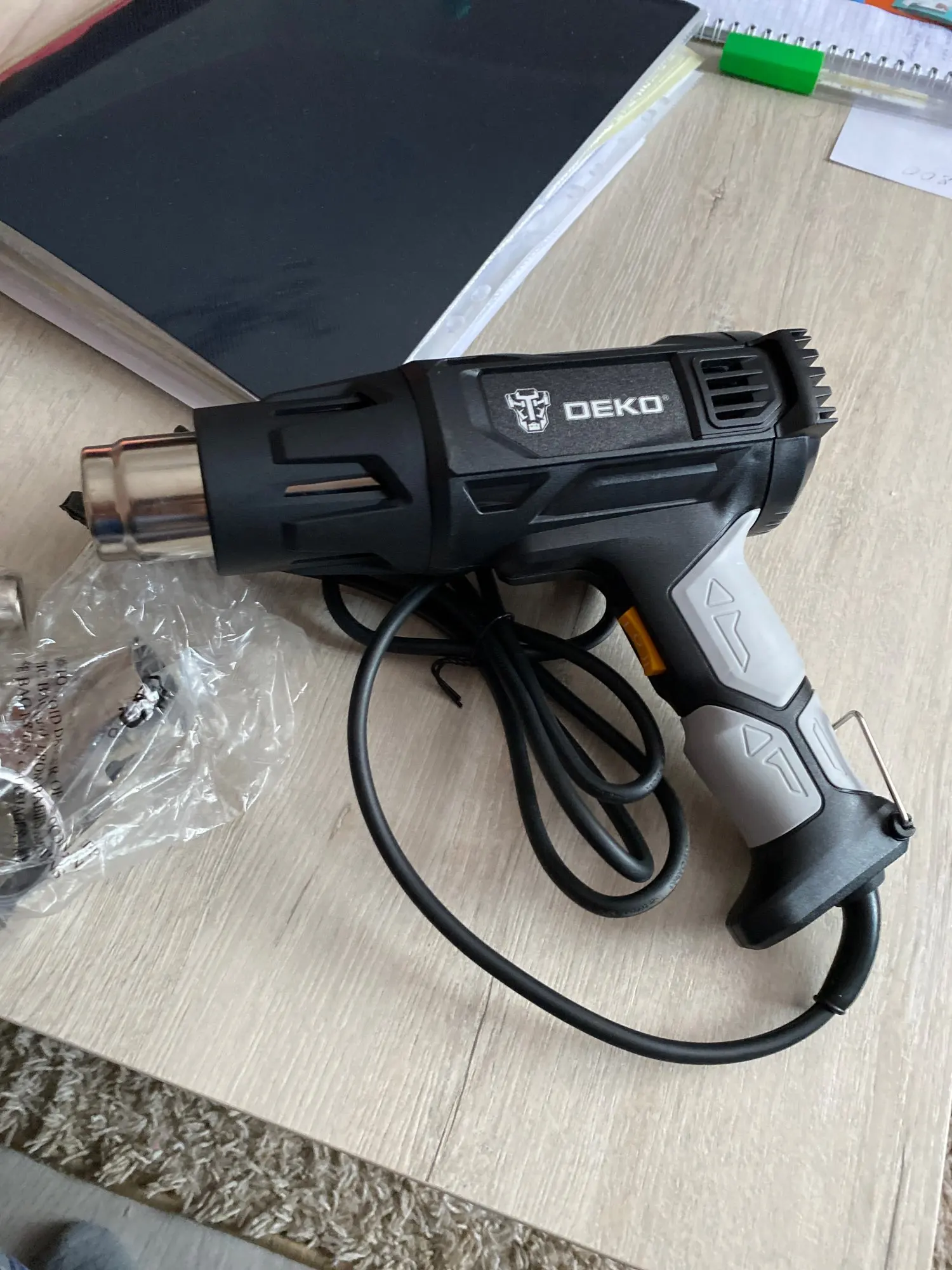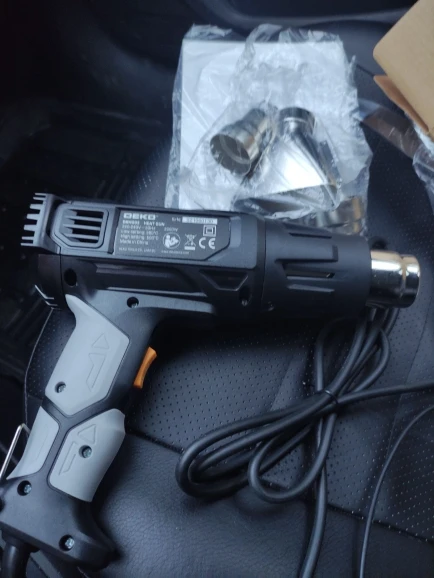 Муж проверил, всё работает, в дальнейшем напишем полный отзыв о работе пистолета теплового. Работает в двух режимах, сколько выдаёт не проверяли ! Инструкция на английском, очень жаль. Вообще ДЕКО очень хорошая фирма, муж хочет собрать этот бренд для мастерской!