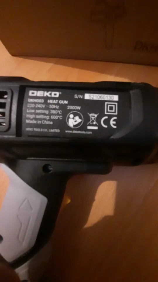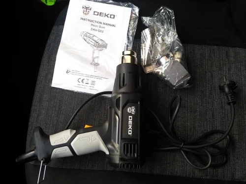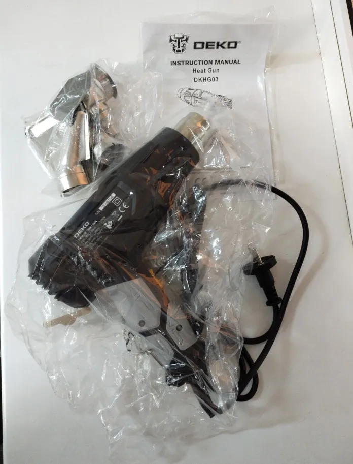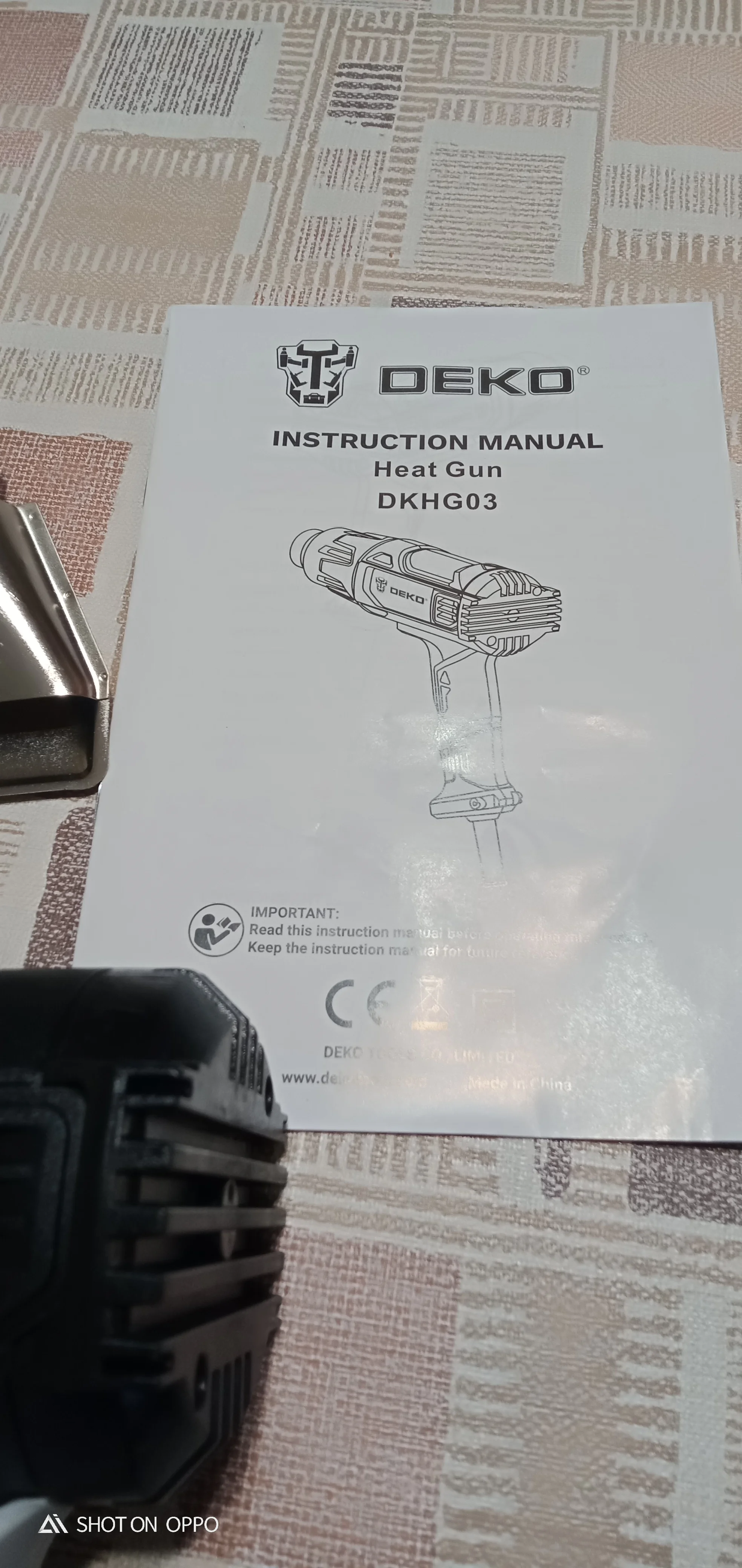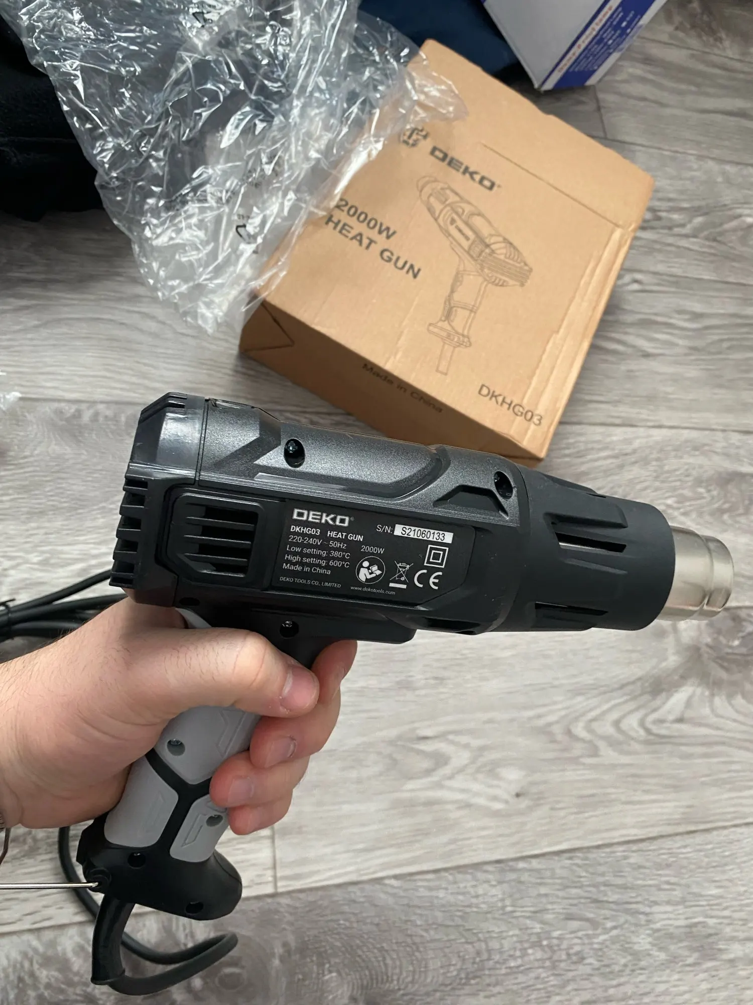 Муж проверил, всё работает, в дальнейшем напишем полный отзыв о работе пистолета теплового. Работает в двух режимах, сколько выдаёт не проверяли ! Инструкция на английском, очень жаль. Вообще ДЕКО очень хорошая фирма, муж хочет собрать этот бренд для мастерской!
