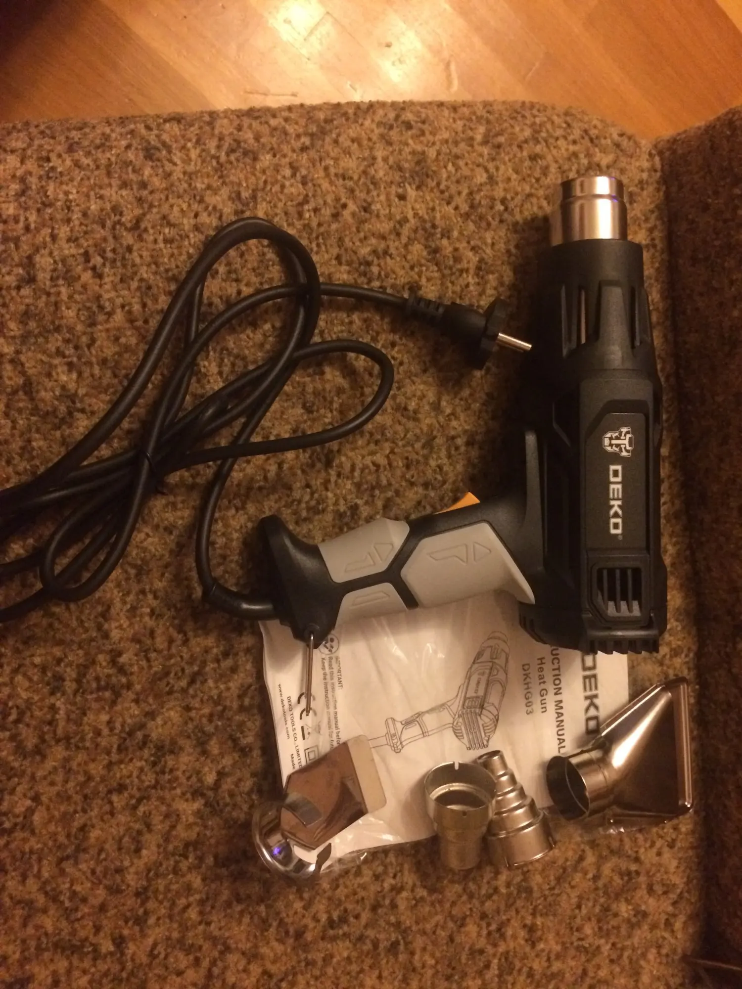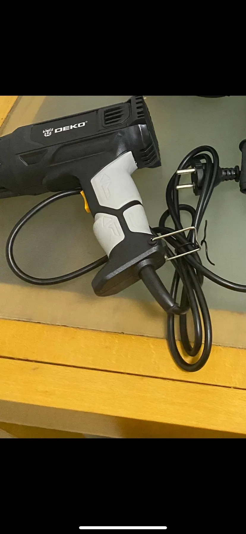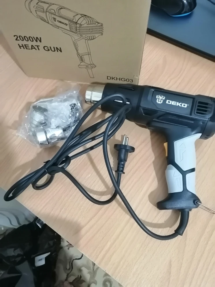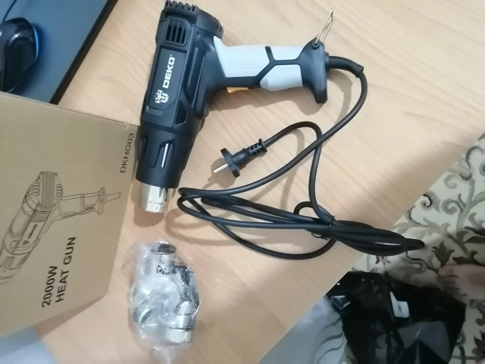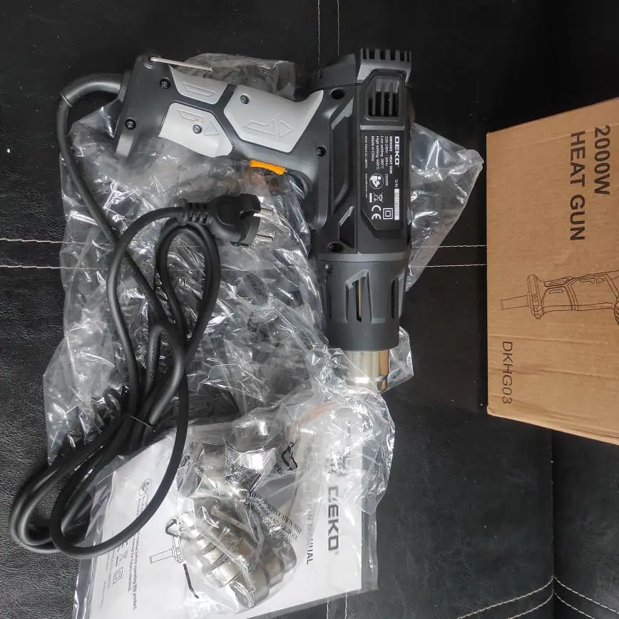 Муж проверил, всё работает, в дальнейшем напишем полный отзыв о работе пистолета теплового. Работает в двух режимах, сколько выдаёт не проверяли ! Инструкция на английском, очень жаль. Вообще ДЕКО очень хорошая фирма, муж хочет собрать этот бренд для мастерской!