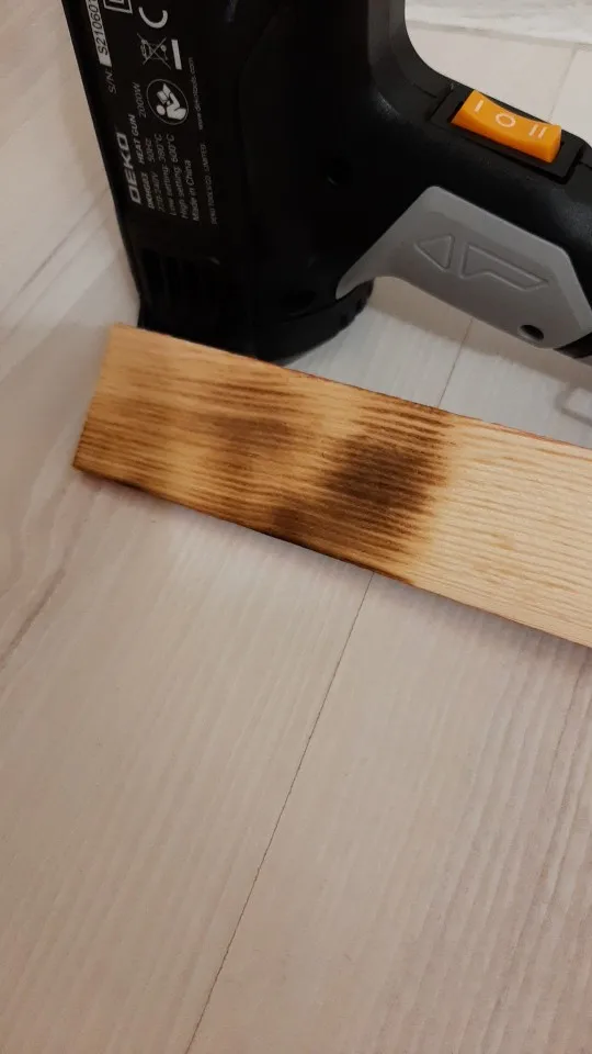 доставка быстрая, качество сборки и материалы корпуса на 4+. в руке держать удобно, есть плоская опора на задней части фена - можно устанавливать вертикально опираясь на ручку. два режима работы - на первом дерево опаливает, второй сильнее. корпус не греется. покупкой доволен, рекомендую к покупке.