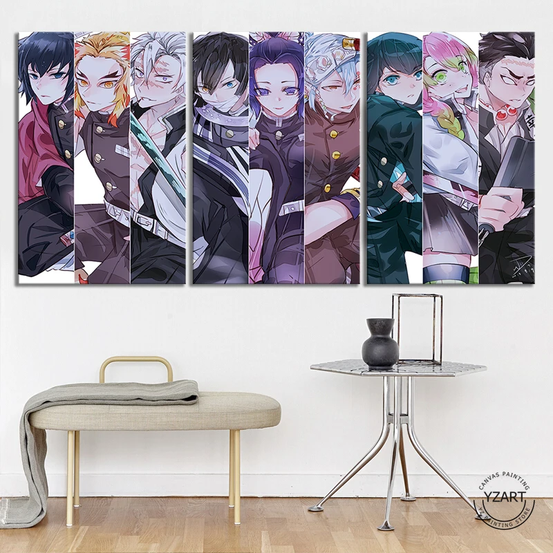 3 шт. HD мультфильм настенная живопись Столбы Kimetsu без Yaiba членов аниме плакат Canvsa настенная живопись искусство домашнего декора