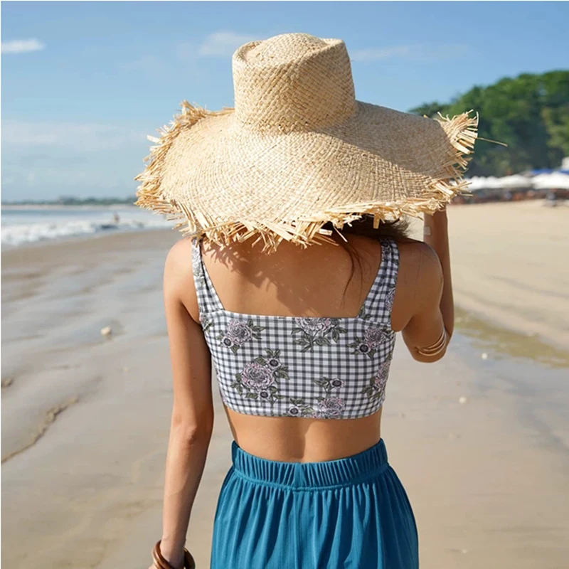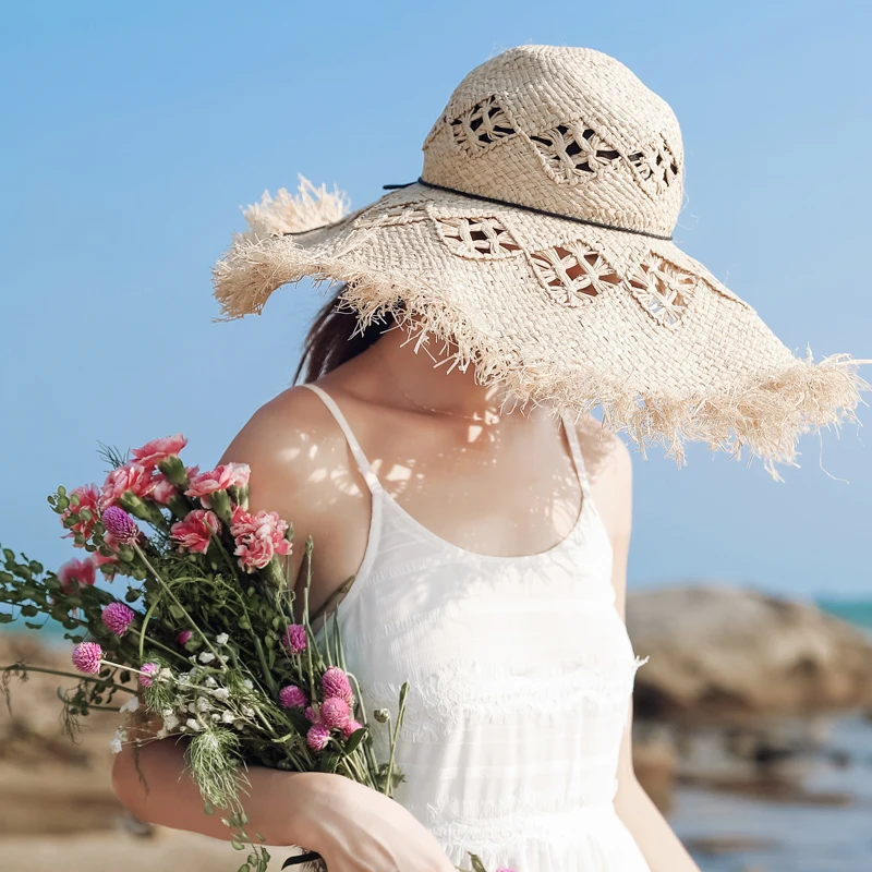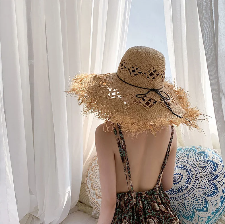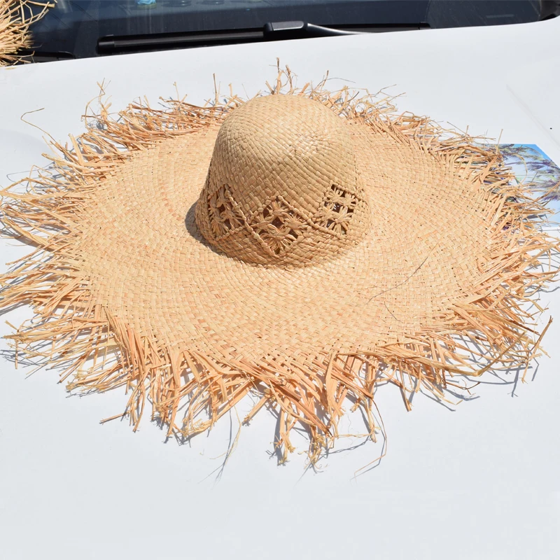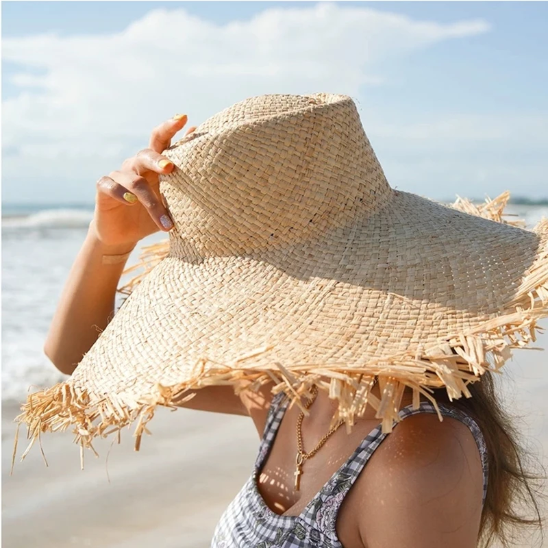 Шляпа Соломенная женская, летняя, с широкими полями, из натуральной рафии