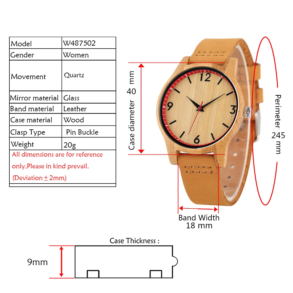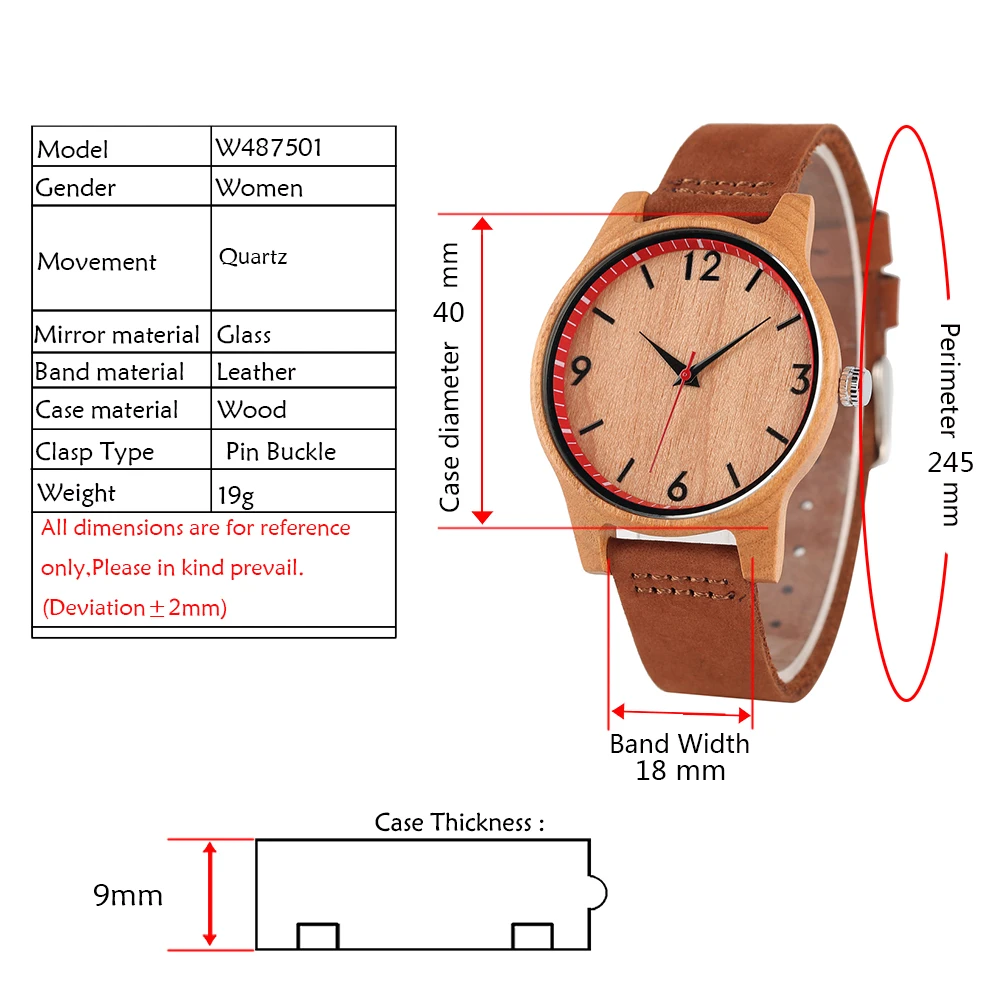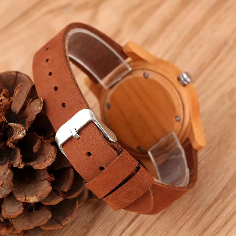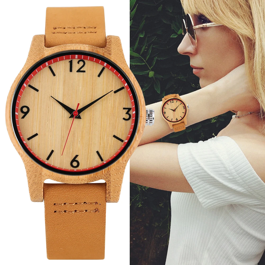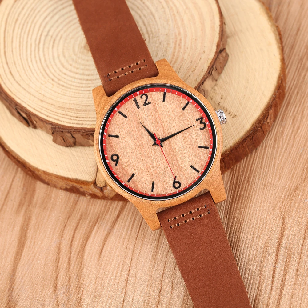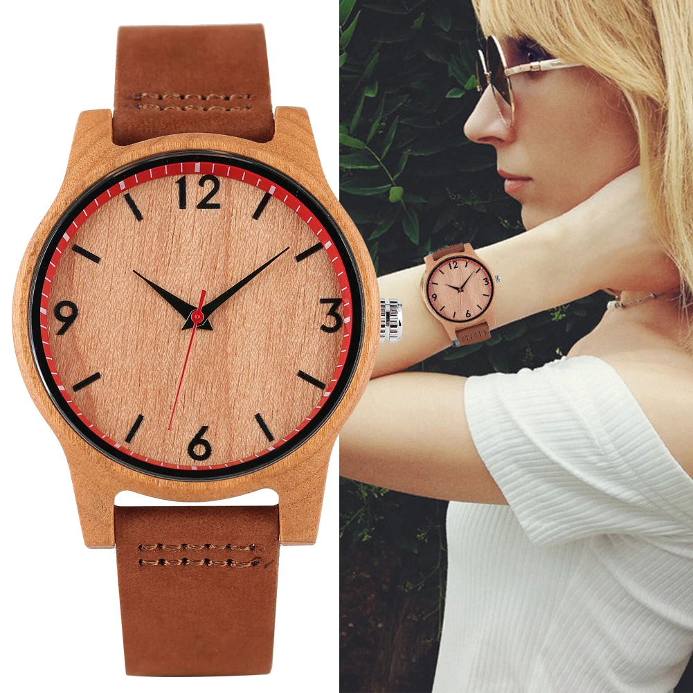 Женские Аналоговые часы, классические, коричневые, с кожаным ремешком, в деревянном корпусе, 2020