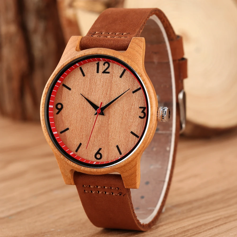 Часы женские из натуральной кожи, кварцевые, с вишневым деревомбамб...